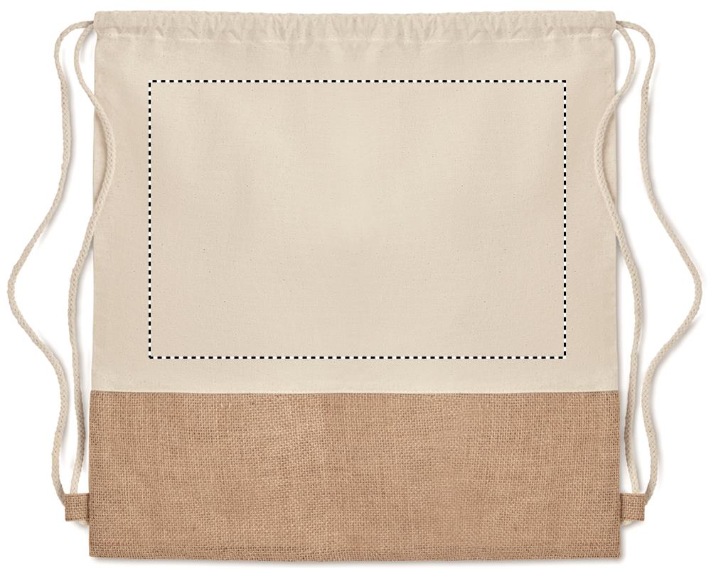 Beutel mit Kordelzug und Besatz aus Jute. Lange Tragegriffe. 160 g/m².