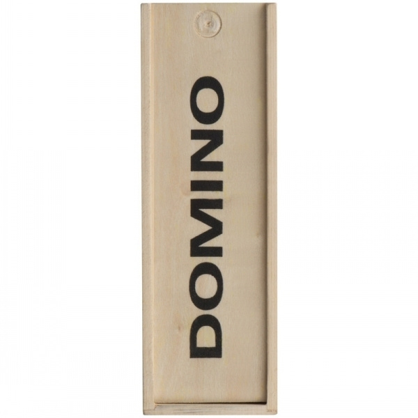 Dominospiel aus Holz. Ihre Werbung drucken wir auf die Frontklappe.