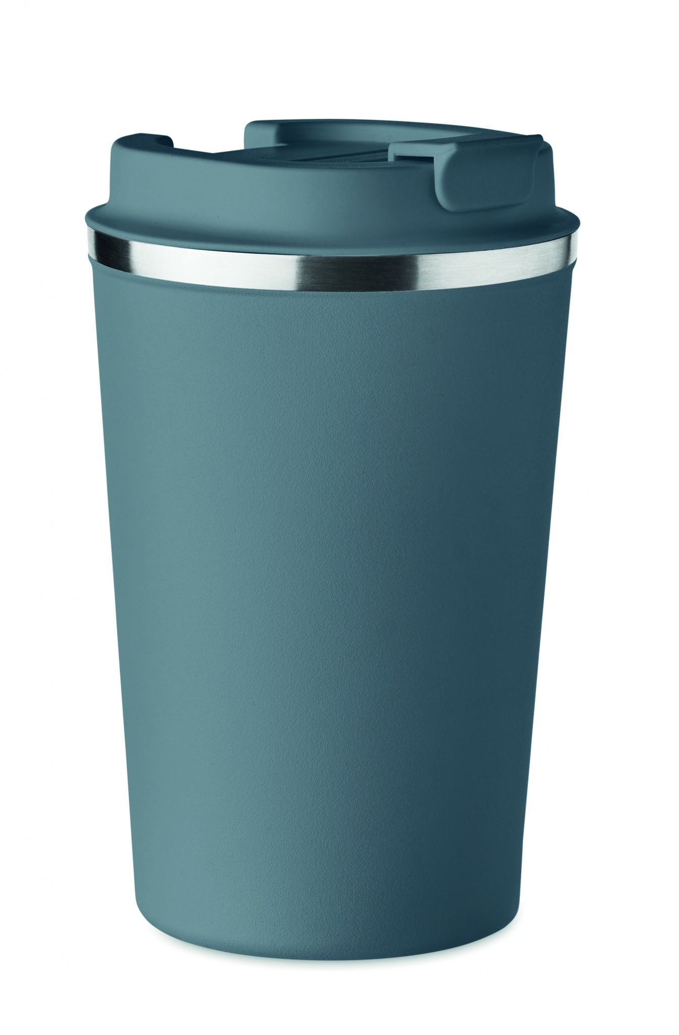 Doppelwandiger Becher aus Edelstahl mit PP-Deckel. Füllmenge: 350 ml.