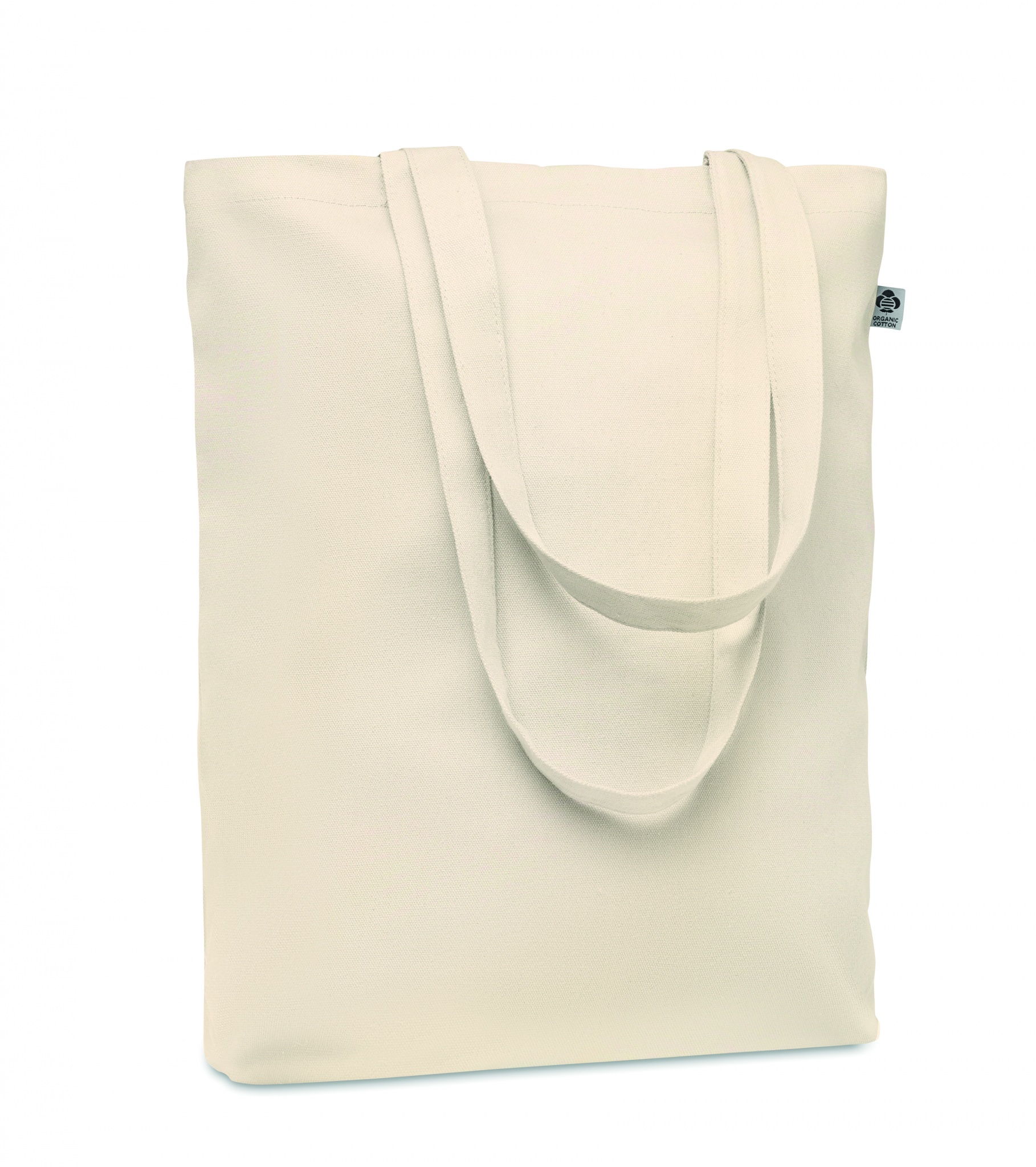 Einkaufstasche aus Organic Canvas mit langen Tragegriffen und Bodenfalz. 270 g/m².