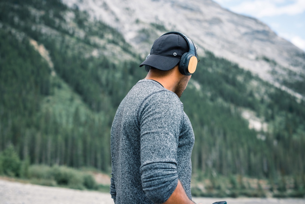 Elite faltbarer kabelloser Kopfhörer aus RCS und Bambus, Schwarz