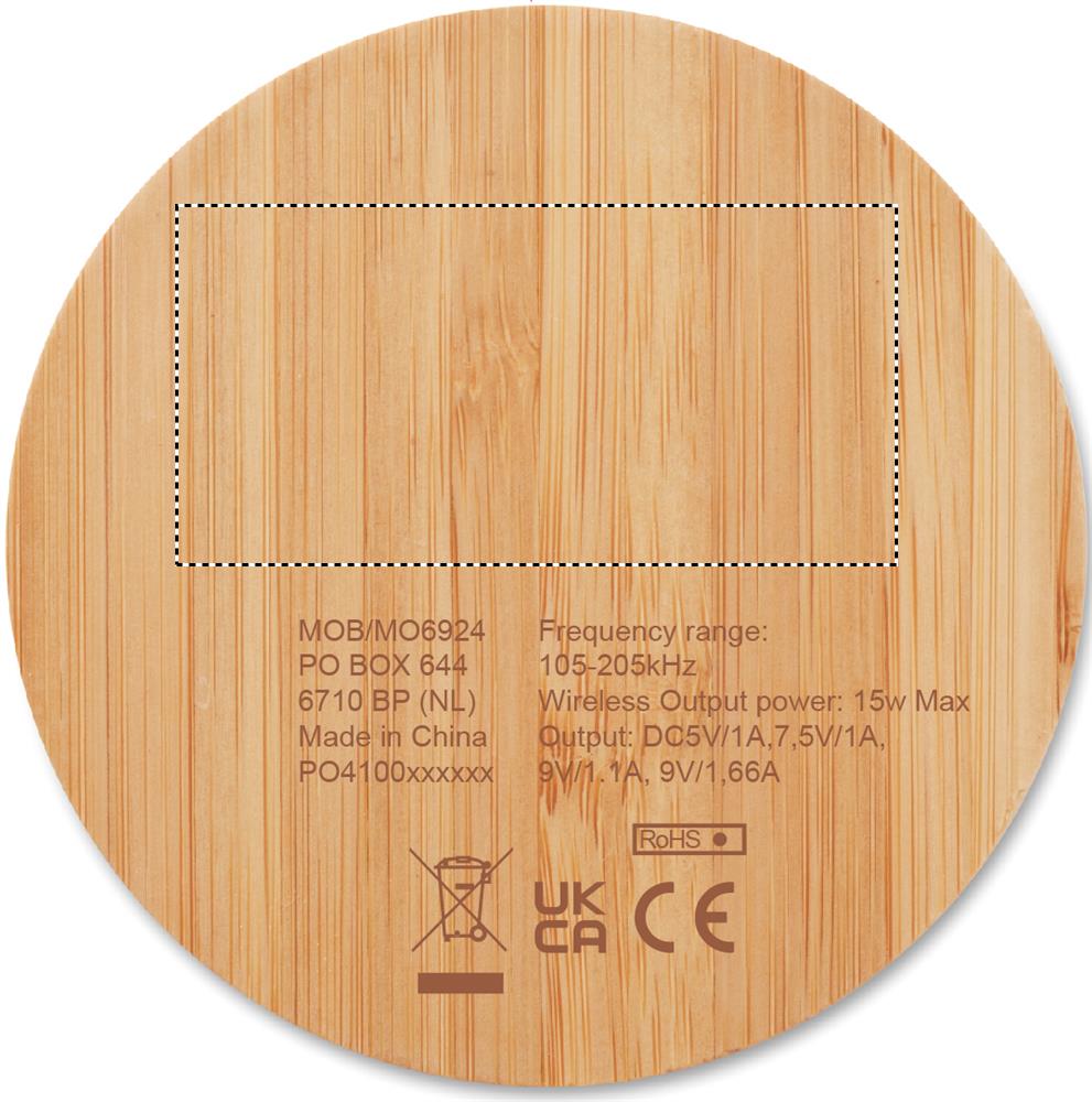 Kabelloses Schnellladegerät im Bambusgehäuse. Verbinden Sie das Gerät mit Ihrem Computer, legen Sie das Smartphone darauf ab und laden Sie es auf. Blaue Ladeanzeige. Ausgang: DC 9V/1.67A (15W). Kompatibel mit allen QI-fähigen Geräten wie den neuesten Androiden, iPhone® 8, X und neueren. Bambus ist ein natürliches Produkt, es kann daher zu leichten Abweichungen in Farbe, Dekor und Maßen kommen.