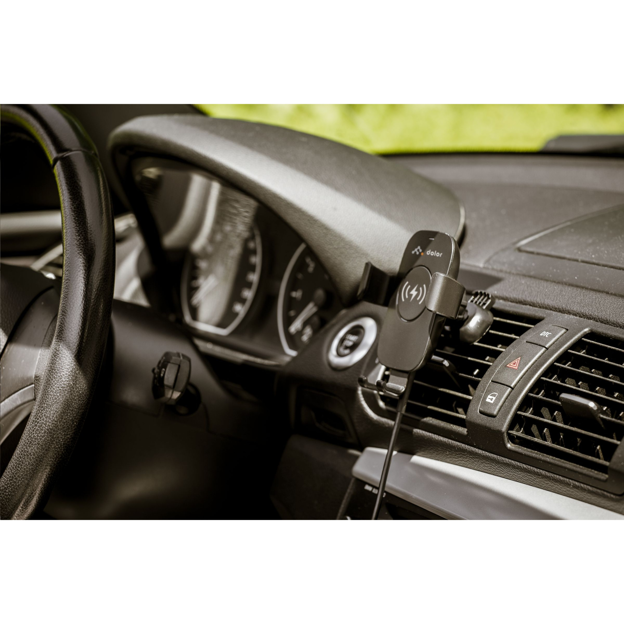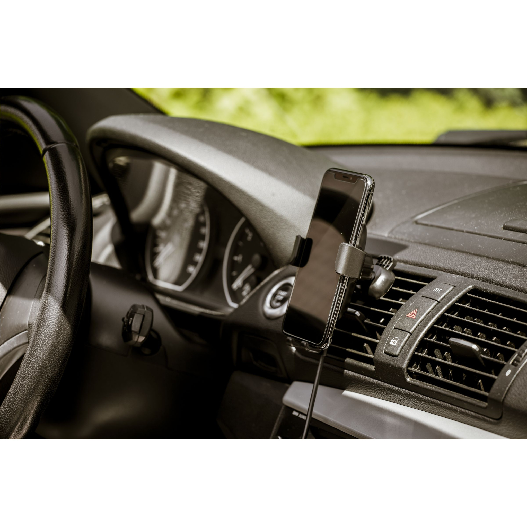 10 W universelle Autotelefonhalterung und Ladegerät. Hergestellt aus recyceltem ABS-Kunststoff. Diese Telefonhalterung ist einfach zu montieren, passt sich der Größe Ihres Telefons an und kann mit einer Hand bedient werden. Ideal für die Satellitennavigation und zum Laden Ihres Telefons unterwegs. Das Telefon kann dank des um 360 ° drehbaren Clips in eine vertikale oder horizontale Position gebracht werden. Das 10 W kabellose Ladegerät ist mit Geräten kompatibel, die kabelloses QI-Laden unterstützen (Android und iPhone der neuesten Generation). Eingang: 5 V/2 A. Kabelloser Ausgang: 5/2 A 10 W. Enthält ein Micro-USB-Kabel (TPE) und eine Bedienungsanleitung. Dieses Produkt und sein Zubehör sind PVC-frei. Jeder Artikel ist einzeln verpackt.