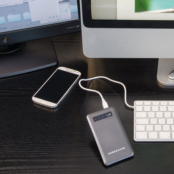 Dieser leicht zu handhabende, externe Metallakku mit 4000 mAh Kapazität zieht jedes Smartphone aus der Patsche. Über das im Lieferumfang enthaltene USB-Kabel lässt er sich am PC aufladen.