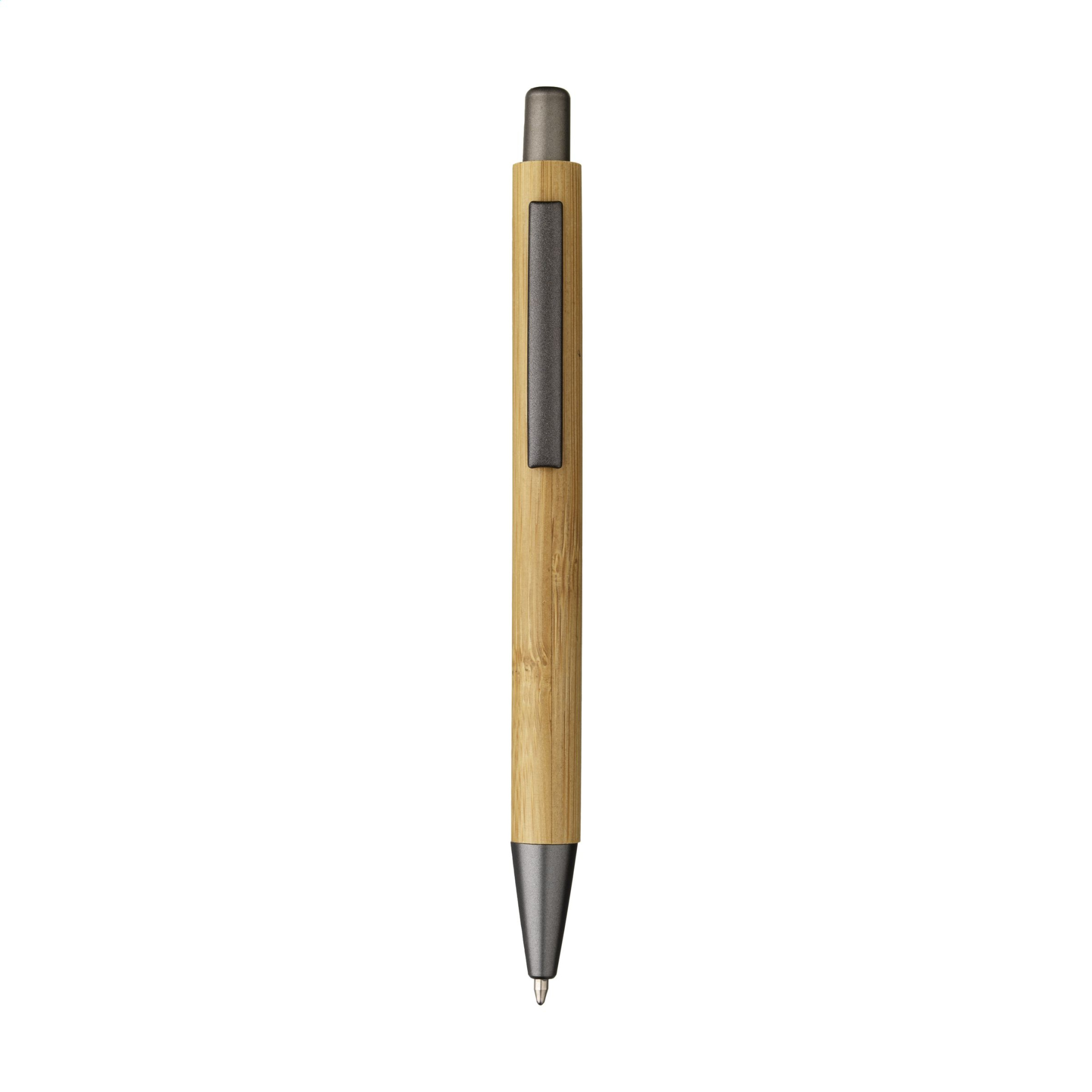 WoW! Blauschreibender Kugelschreiber mit schönem Bambusschaft, ABS-Spitze, Druckknopf und Metallclip.