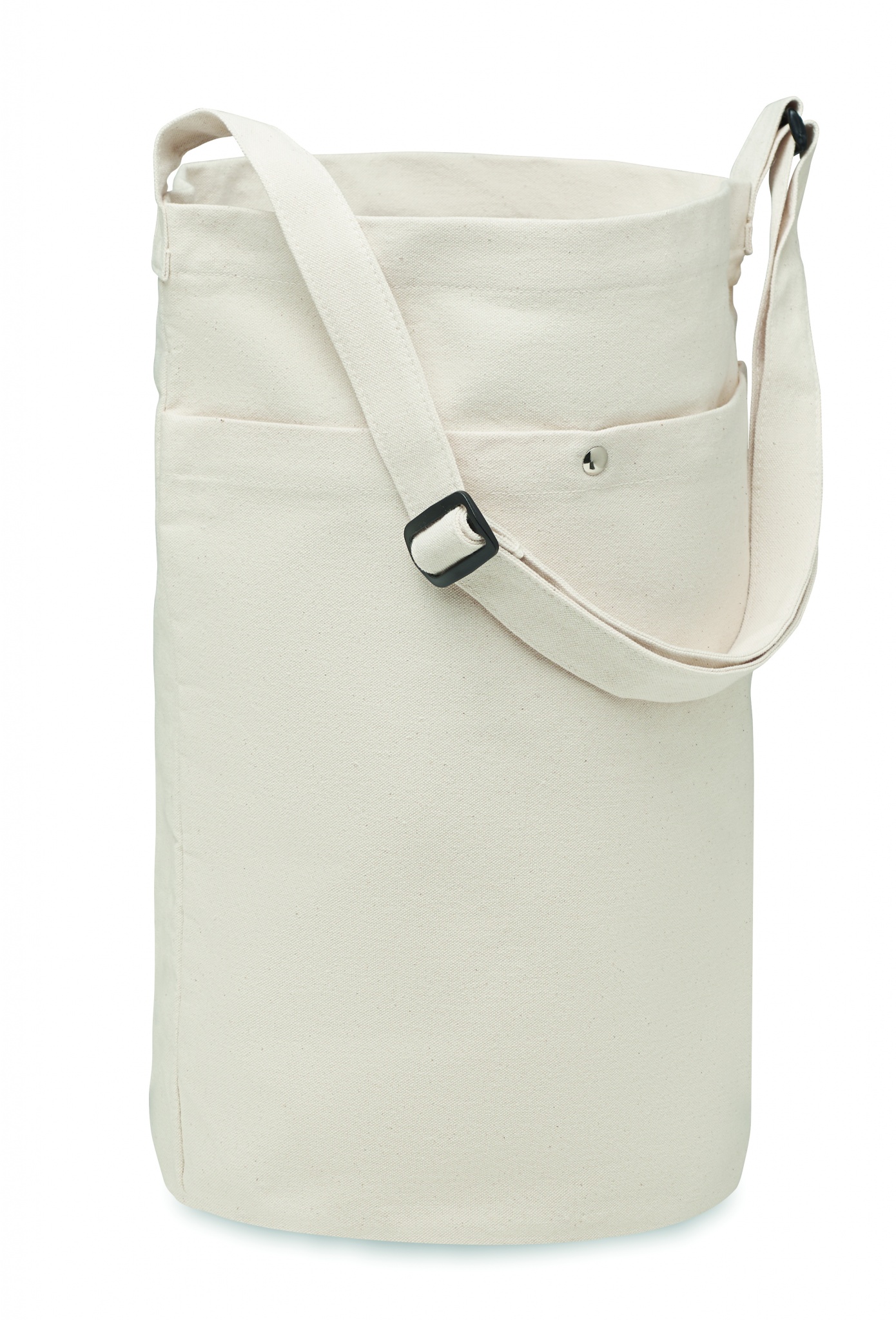 Shopper aus Canvas mit langem, verstellbarem Schulterriemen. Große Fronttasche mit Druckknopfverschluss. Inkl. Innentasche. 270 g/m².