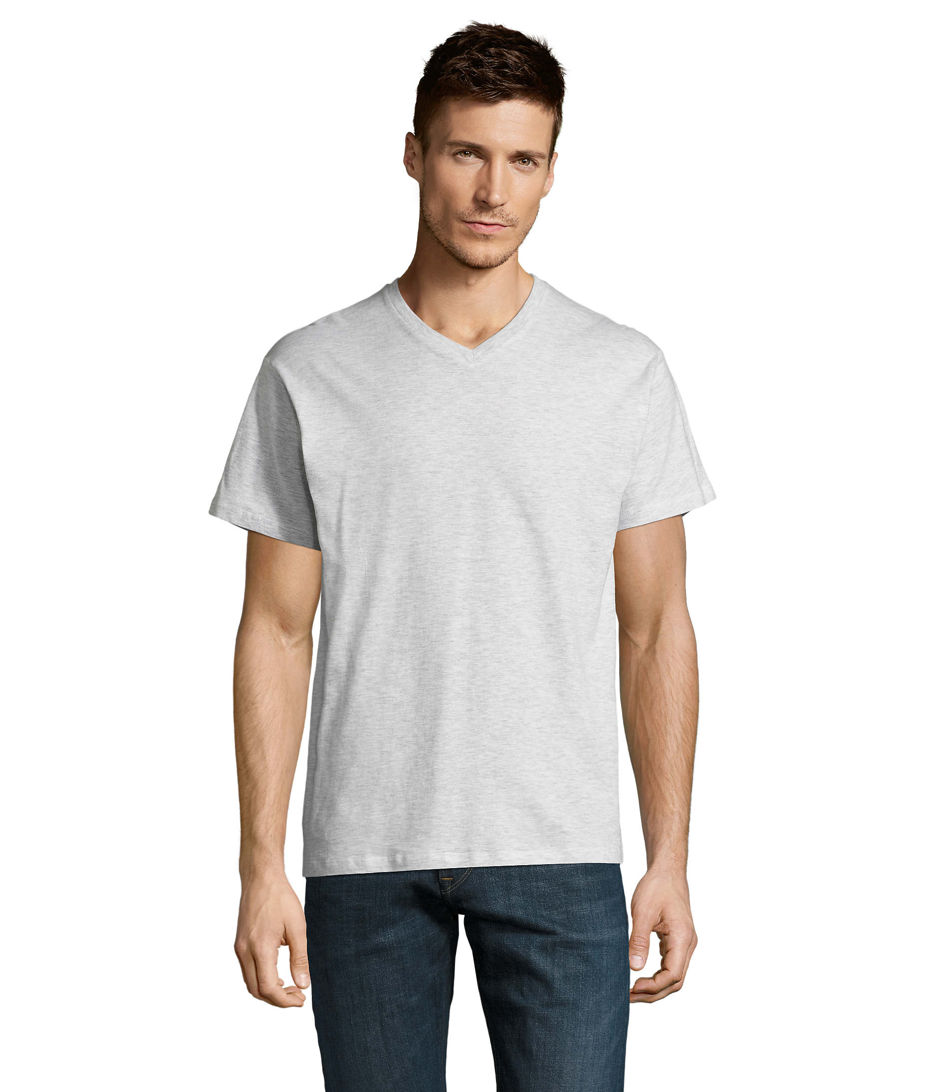 SOL'S VICTORY, Herren-T-Shirt mit V-Ausschnitt, 100% halbgekämmter, ringgesponnener Baumwoll-Jersey 150, Verstärkungsband am Hals, kurze Ärmel, 2 Rippenstärken am Kragen, schlauchförmig, (1) aschgrau : 98 % Baumwolle / 2 % Viskose, (2) grau melange : 85 % Baumwolle / 15 % Viskose. zur Größenanpassung siehe Größentabelle im Abschnitt Produktdokumentation.