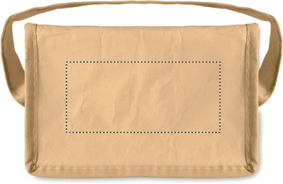 Paper woven cooler bag for 6 cans. It has a handle and a front pocket. Isolation material: PE foam layer. Capacity 3L.