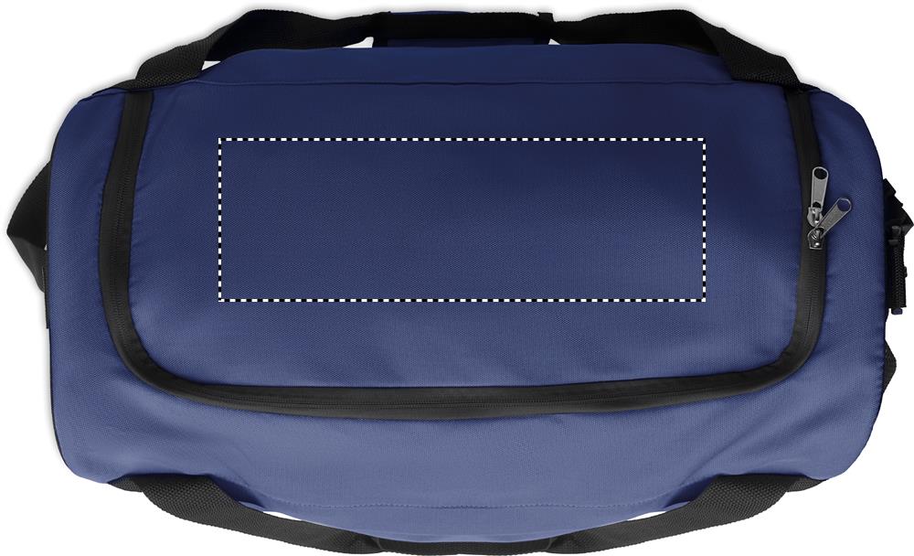 Sport or travelling bag in 600D RPET with large zippered front pocket, inside zippered pocket and adjustable and detachable shoulder strap.