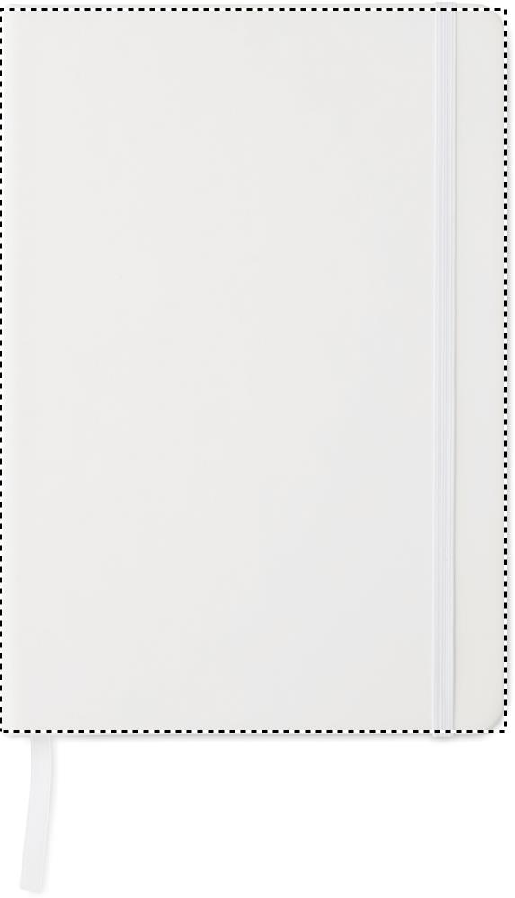 A5 notebook with antibacterial hard PU cover with nano silver based active agents inhibiting and preventing the growth of at least 99% of bacteria. Casebound. 192 lined pages (96 sheets). Matching elastic closure strap and ribbon page-marker. Conforms ISO 22196.