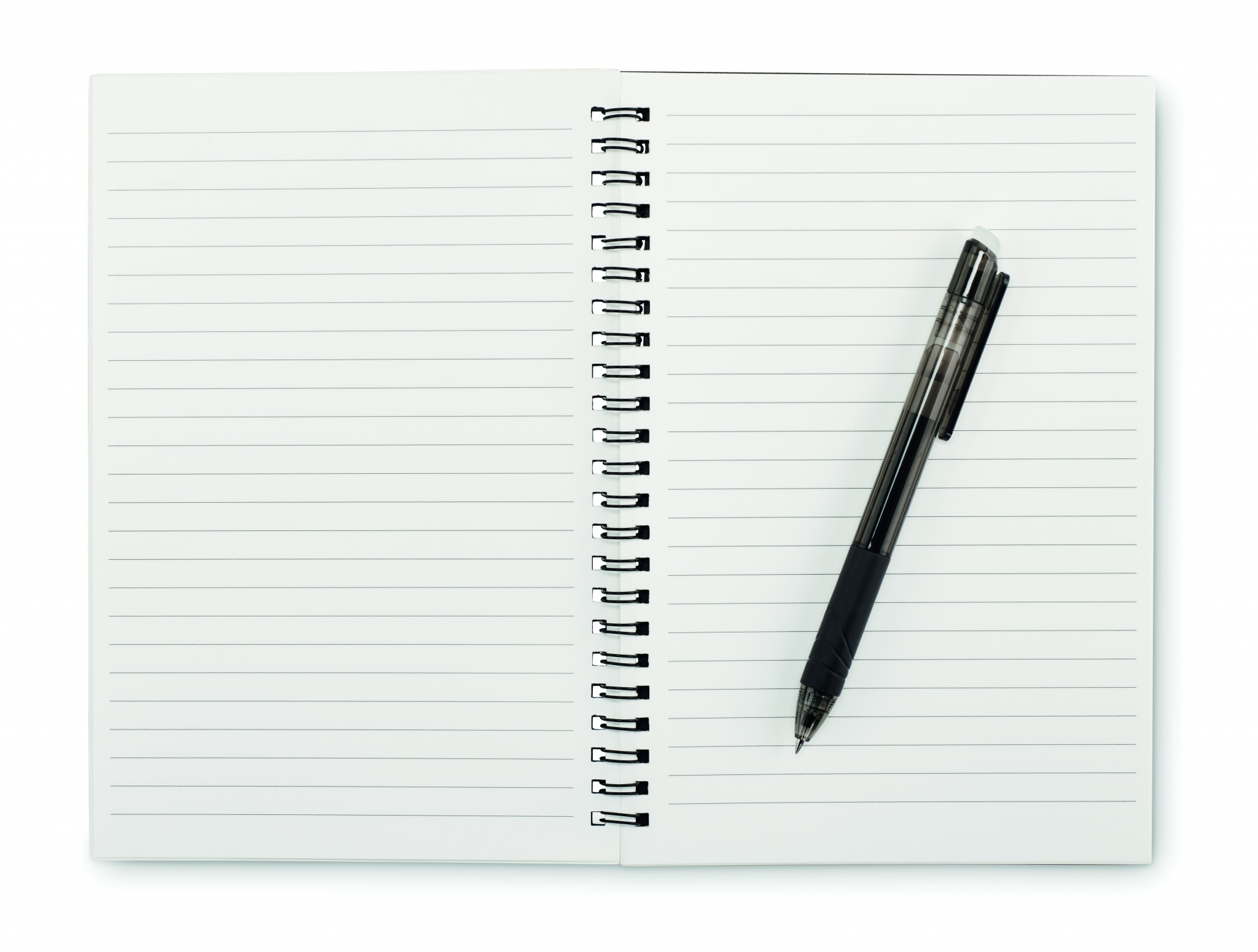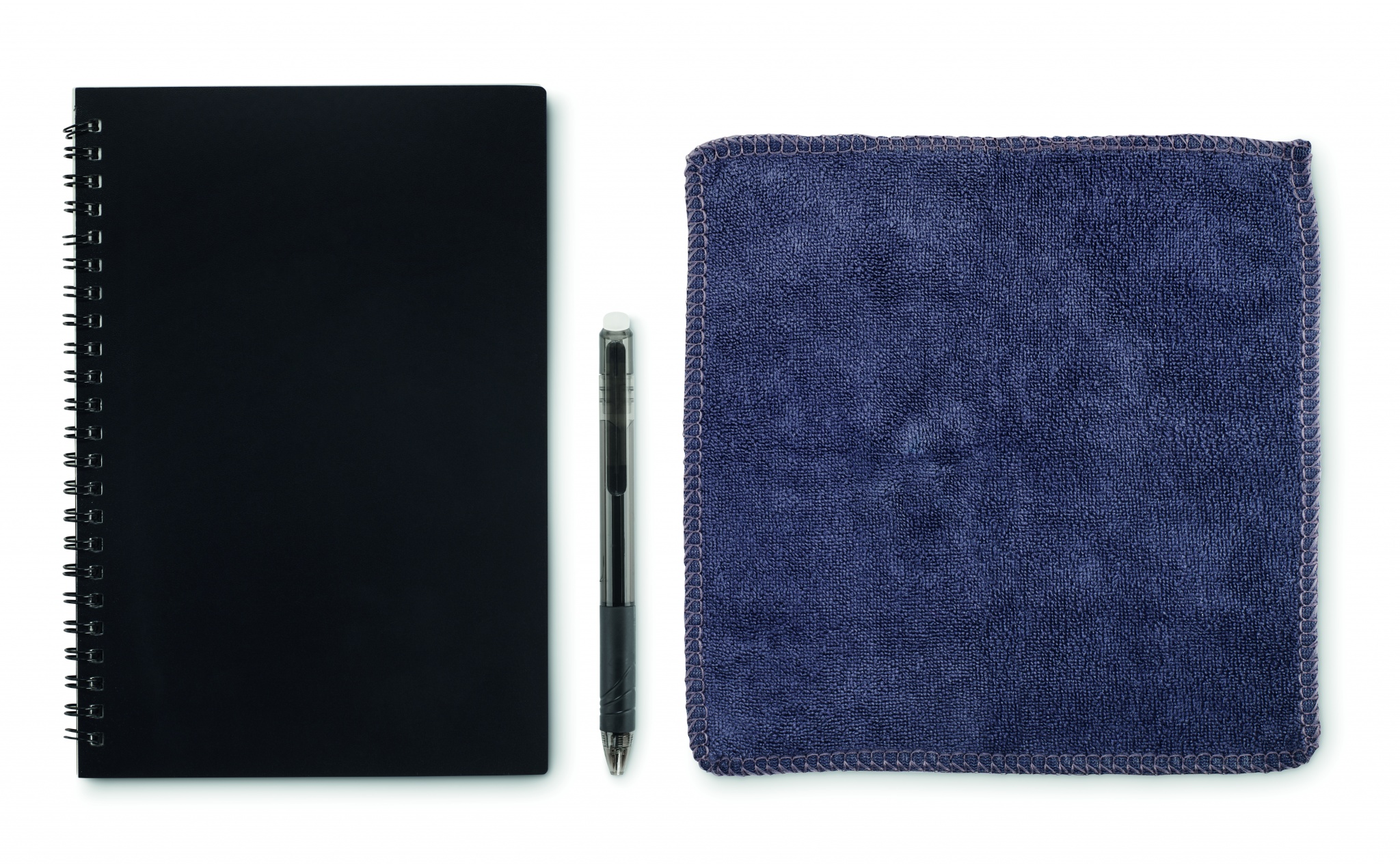 A5 Reusable notebook in PP cover. 36 lined pages (18 sheets). Compatible with any document scanning app. Including water-erasable pen and cleaning cloth.