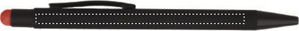 Push button stylus pen in aluminium. When the logo is engraved on to the barrel, the colour revealed matches the colour of the touch tip. Blue ink.