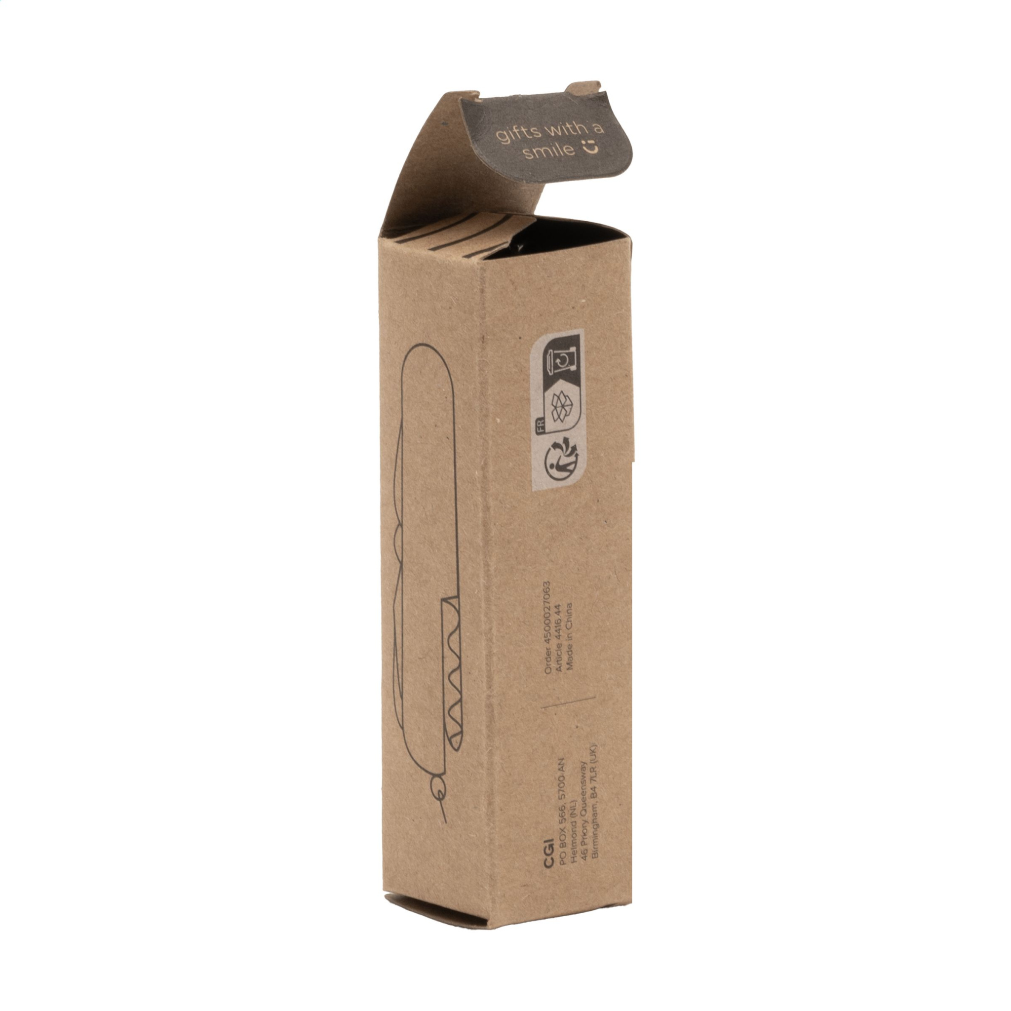 Pocket knife with beechwood handle. 8-pieces with 11 functions: knife, corkscrew, can opener, bottle opener with small screwdriver, Phillips screwdriver, scissors, file, fish scaler, hook removal tool, awl. With keyring. Please note local rules may apply regarding the possession and/or carrying of knives or multitools in public. Each item is supplied in an individual brown cardboard box.