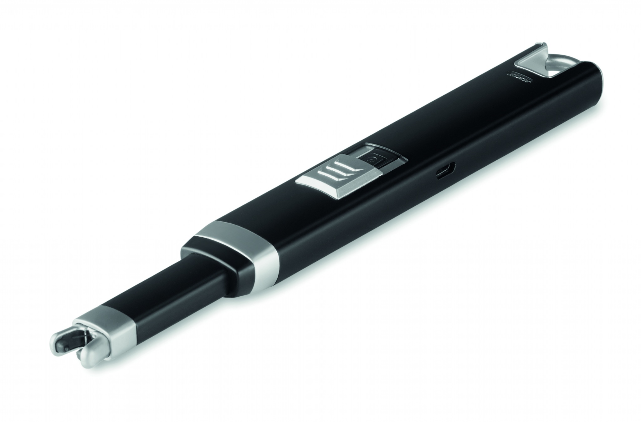 Large USB rechargeable ignitor lighter with single arc flame. Li-Ion 220 mAh battery. Including USB charging cable.