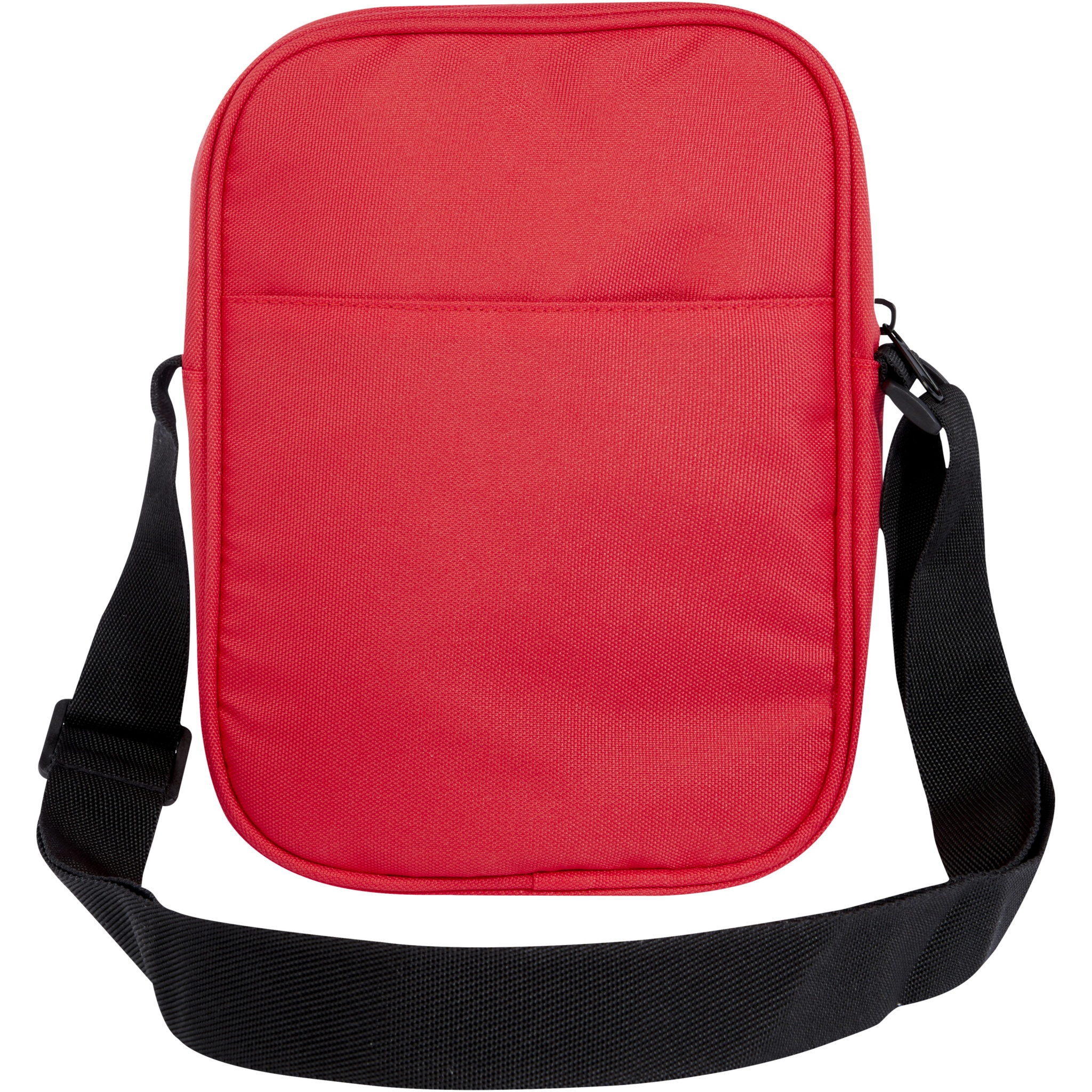 Practical and water-repellent crossbody bag made of GRS recycled polyester. It features a zipped compartment with a sleeve pocket inside to keep your everyday gadgets safely in place, a zipped front pocket for keys and valuable accessories, and an open sleeve pocket on the back for quick storage and access. With its adjustable high quality shoulder straps, the Byron crossbody bag is a perfect bag for everyday use with a minimal ecological footprint. PVC free.