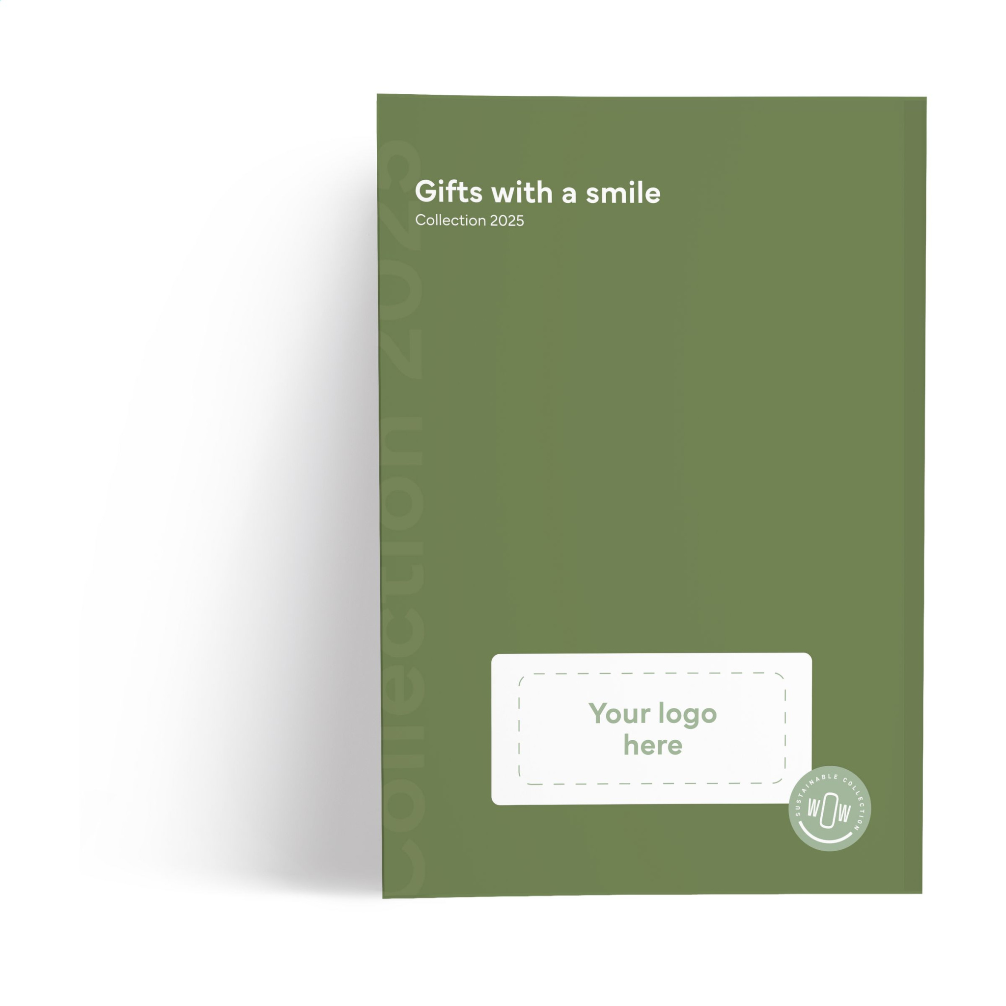 2025 Catalogue Sustainable Collection. Printed version. With standard cover without logo ór your logo in 1 or 2 colours on the back cover. No prices are mentioned in the catalogue.