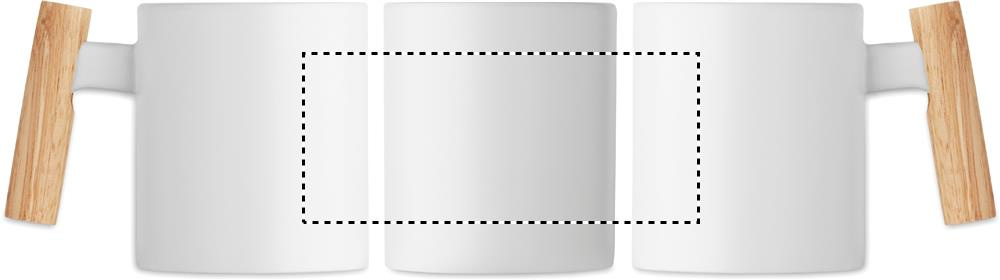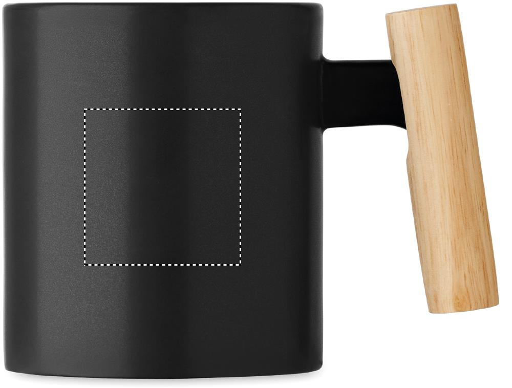 Ceramic mug with wooden handle. Capacity: 320ml. Individual packed in white carton box. Hand wash only.