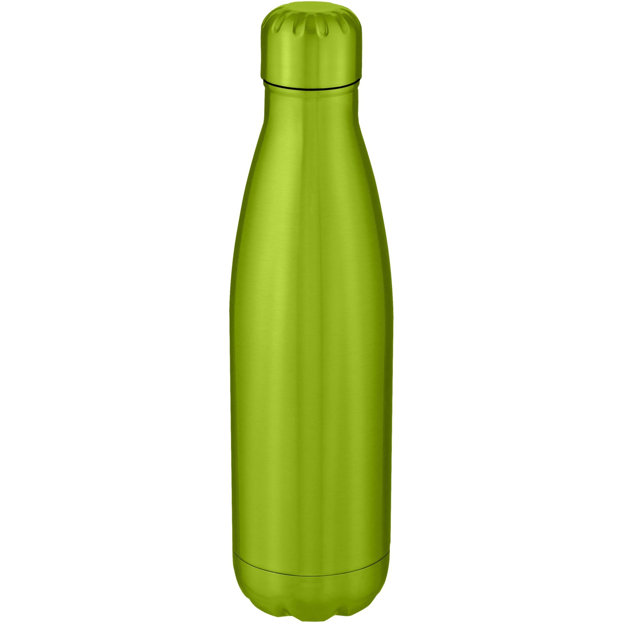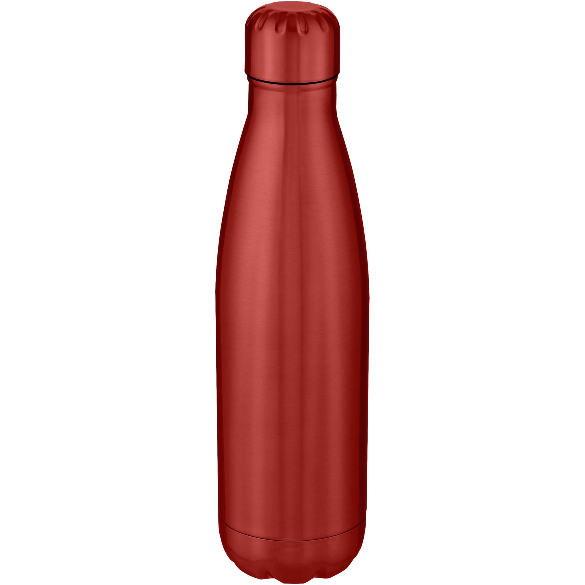 Vacuum insulated stainless steel bottle with an iconic design. The insulated 18/8 stainless steel keeps drinks hot or cold for several hours. Tested and approved under German Food Safe Legislation (LFGB), and tested for phthalates content according to REACH regulations. Featuring a base that fits in most cup holders, this sleek looking water bottle is a perfect promotional item. Volume capacity is 500 ml. Presented in a recycled cardboard gift box.