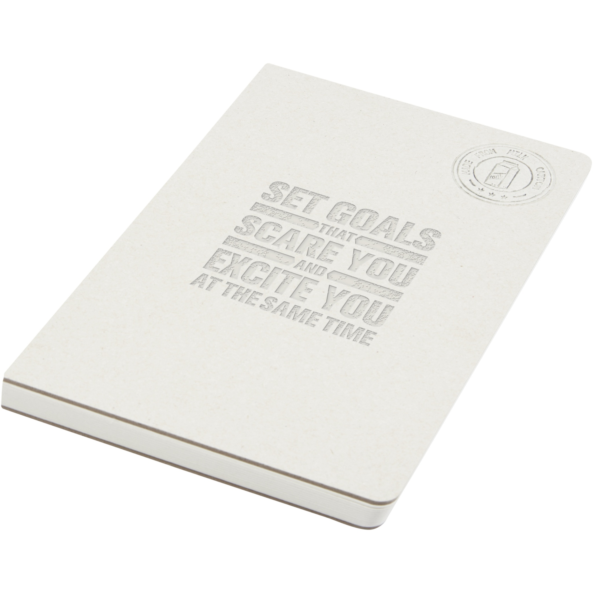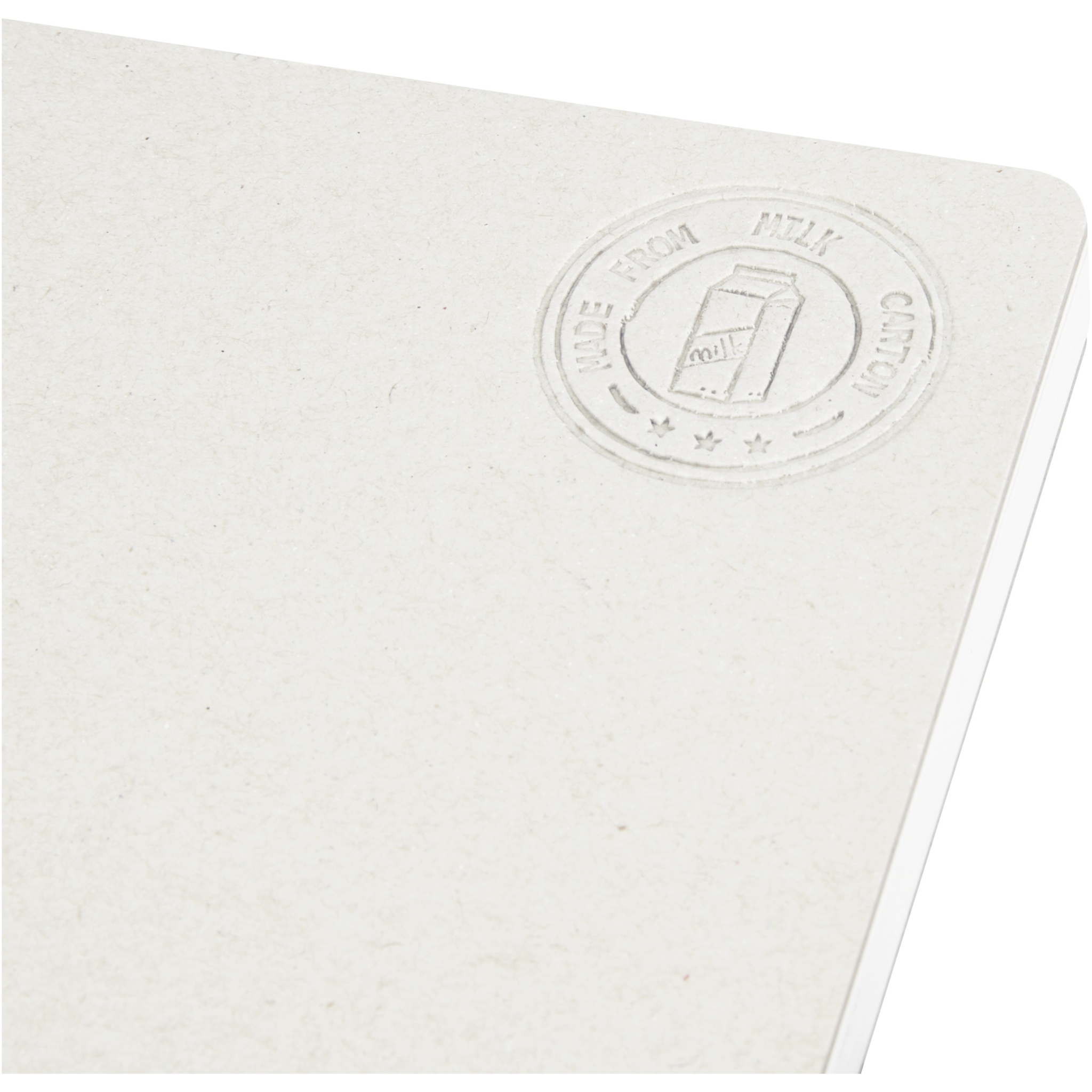 A5 size reference spineless notebook with 80 80 g/m² lined sheets, made from recycled milk cartons (up to 70%). Used milk cartons are collected, sorted, processed and turned into paper, truly turning waste into something useful.