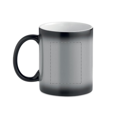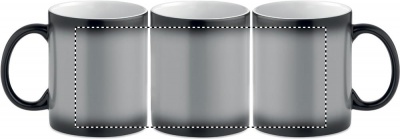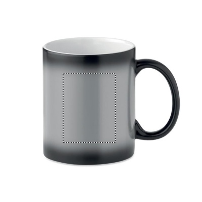 Ceramic mug of 300 ml capacity with special coating for sublimation. Mug changes colour to your personalized printing when pouring (at least) 50°C liquid into the mug. Individual packing in white carton box.