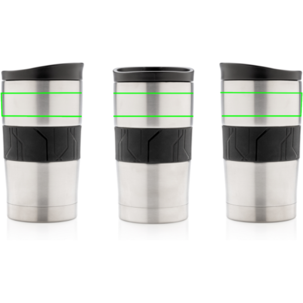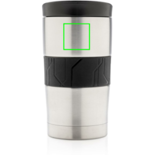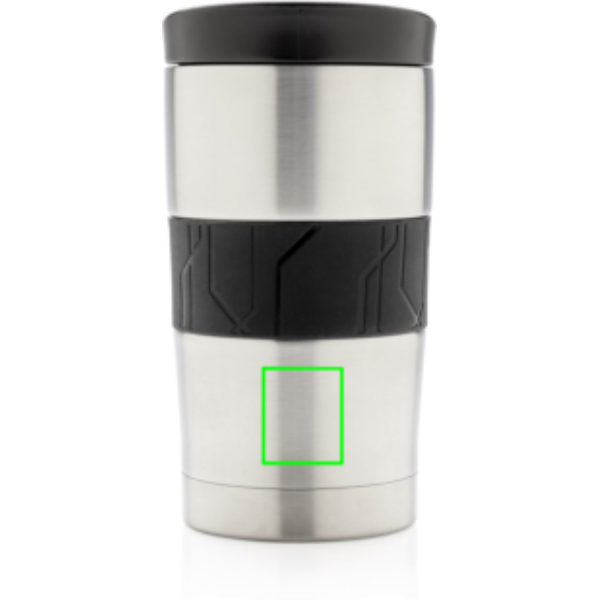 Leakproof vacuum mug made out of 304 stainless steel with silicone grip and slider lid. Dishwasher safe and suitable for most coffee machines. Convenient one-hand drinking. Content: 300ml.