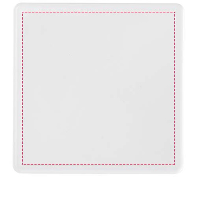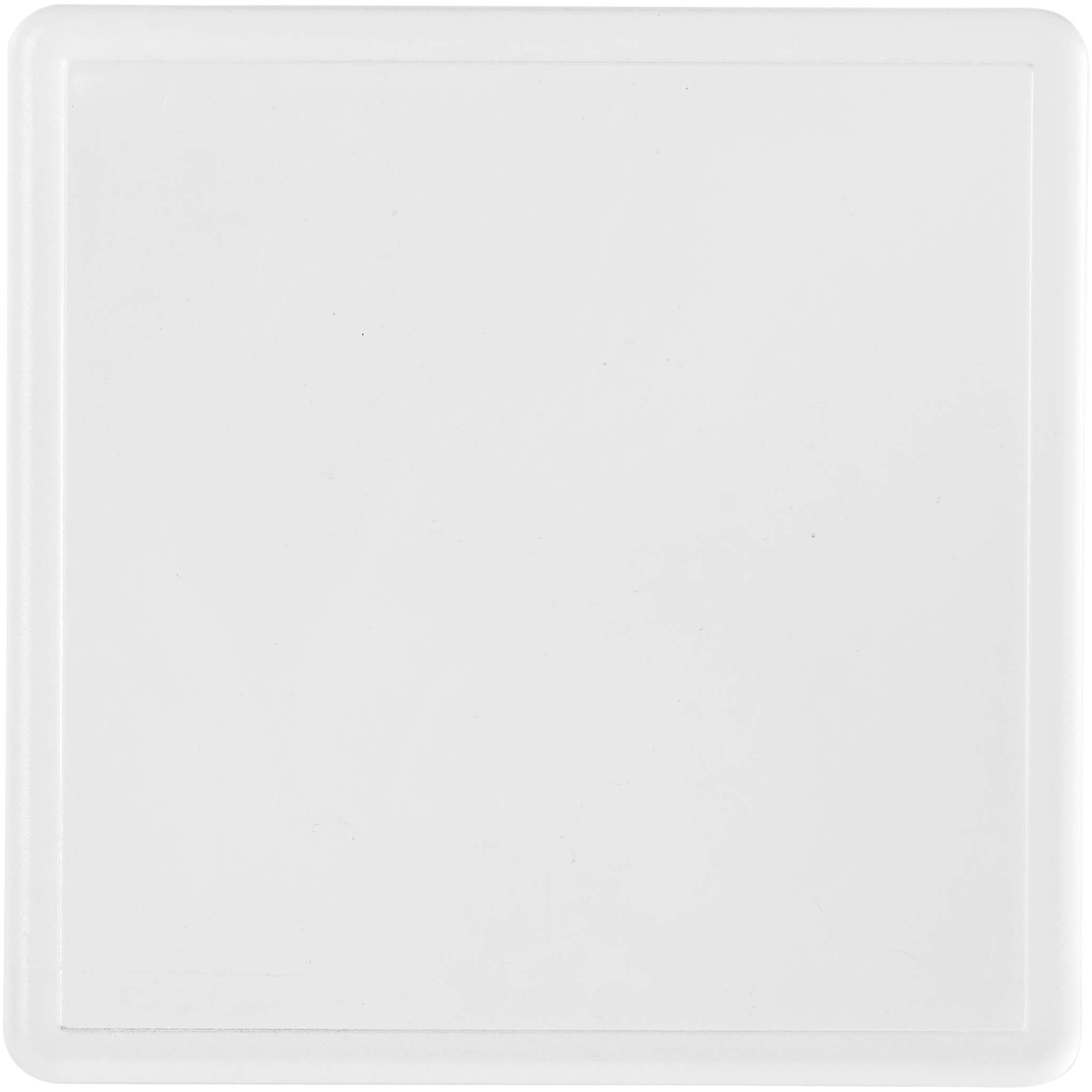 Two-part plastic coaster that carries a printed paper insert. Paper insert can be printed on both sides.