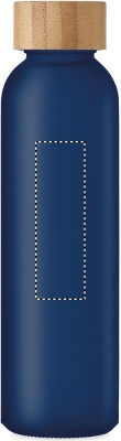 Glass bottle with frosted finish and bamboo lid. Leak-free. Capacity: 500 ml. Bamboo is a natural product, there may be slight variations in colour and size per item, which can affect the final decoration outcome.