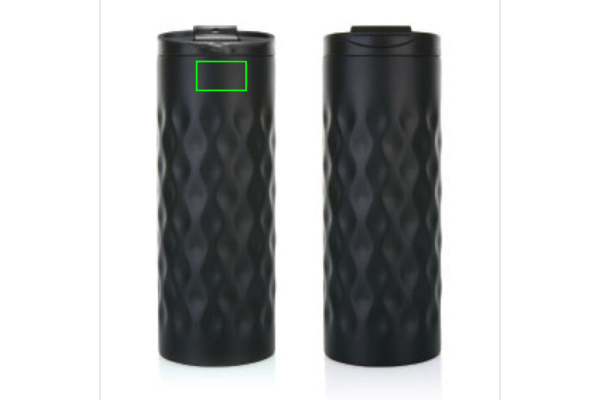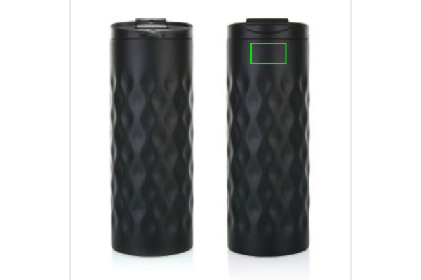 Stainless steel double wall tumbler, with a trendy geometric cut design. Capacity 350 ml.