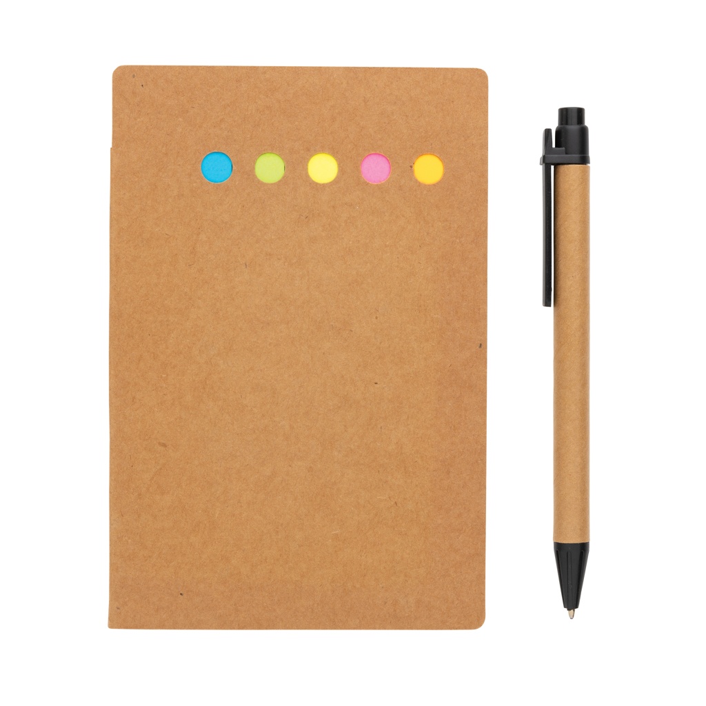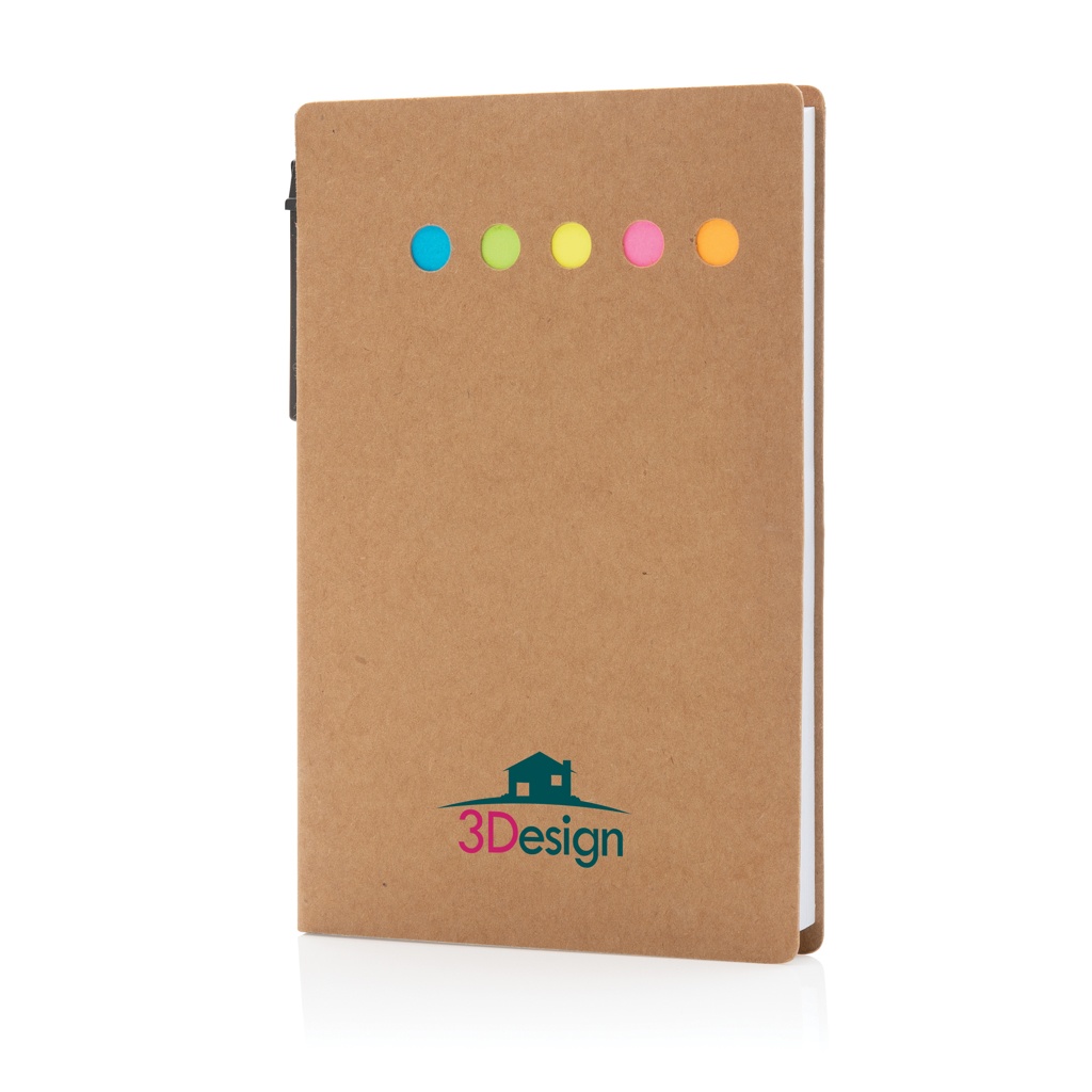 Logo trade corporate gifts image of: Kraft sticky notes A6 booklet with pen