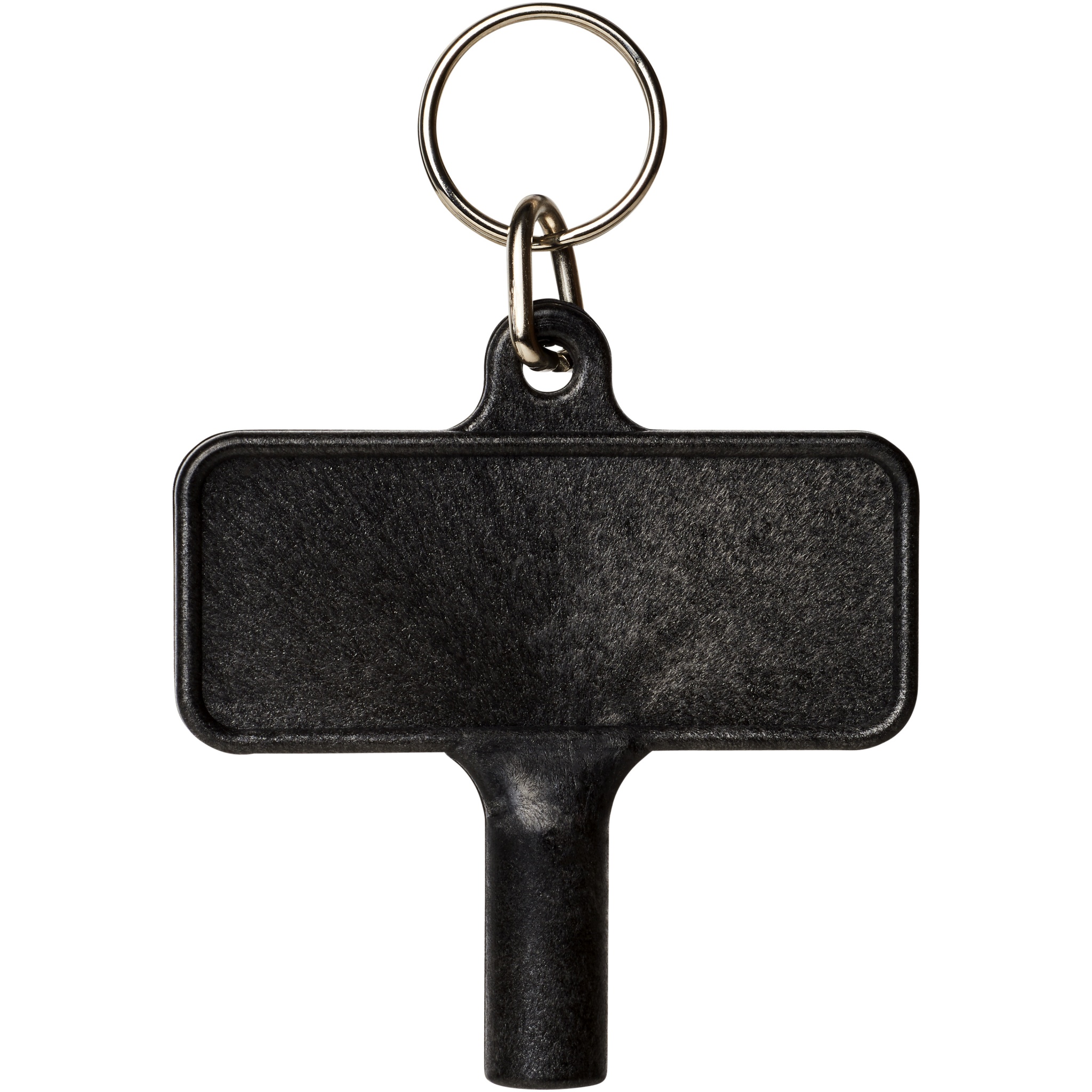 Utility key with keychain for items such as radiators, meterboxes, street poles. The dimensions for the opening is a square shape with 5 mm edges.
