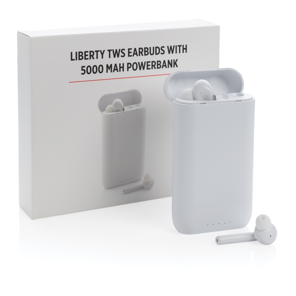 Liberty TWS earbuds with 5.000 mAh powerbank, white