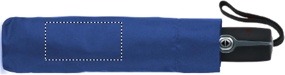 21 Inch Luxe 3 fold automatic windproof umbrella in 190T pongee with zinc plated steel shaft, black ribs with 2 sections fiberglass and chrome metal tips , black rubberised handle with doming. Includes matching pouch. Auto closure.