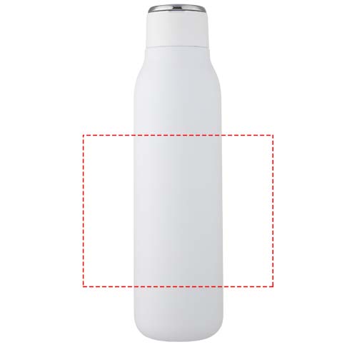The Marka bottle features stainless steel vacuum construction with copper insulation that keeps drinks hot or cold for several hours. The insulated 18/8 stainless steel construction prevents condensation on the outside of the bottle, and the on-trend powder-spray finish makes it extra durable. It also features a screw-on, spill-resistant lid and a durable, zinc-alloy hand loop. BPA-free, tested and approved under German Food Safe Legislation (LFGB). Tested and approved for phthalates content according to REACH regulations. Fits most standard car cup holders. Volume capacity is 600 ml. Hand wash recommended. Presented in a recycled cardboard gift box.