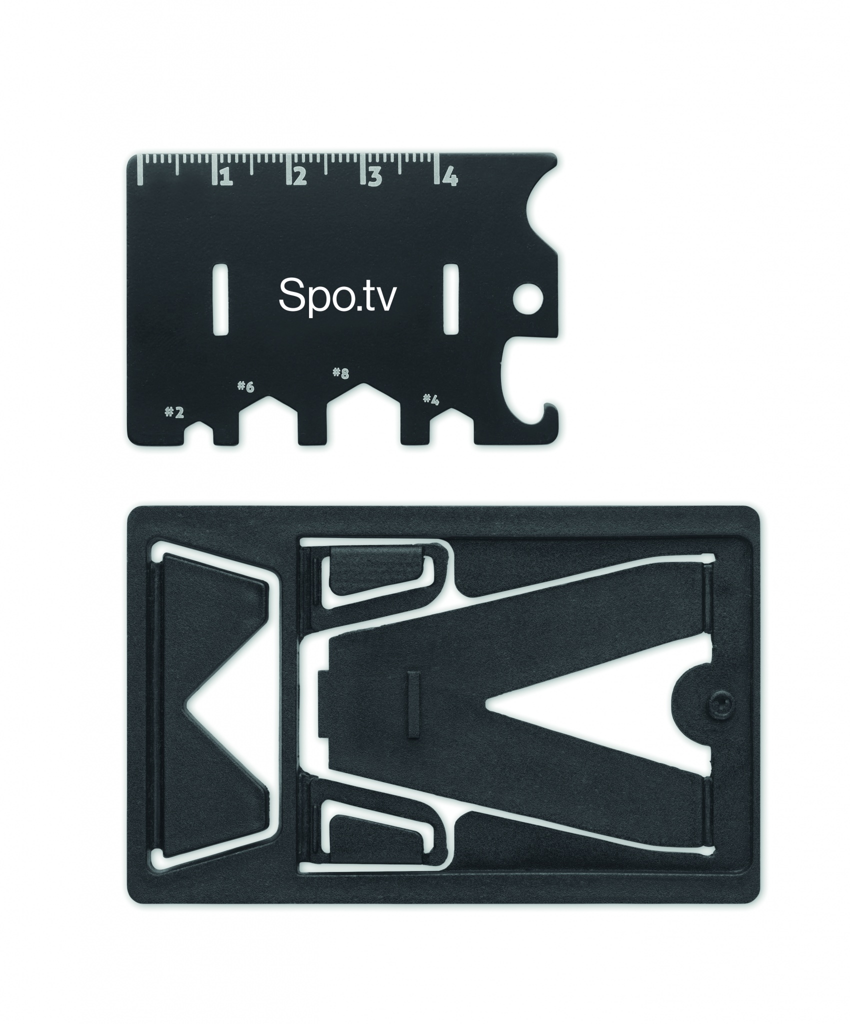 Multi-tool in stainless steel and PP with phone stand functionality with 6 functions in PU pouch. It includes screwdrivers, ruler, hexagonal wrench and bottle opener.