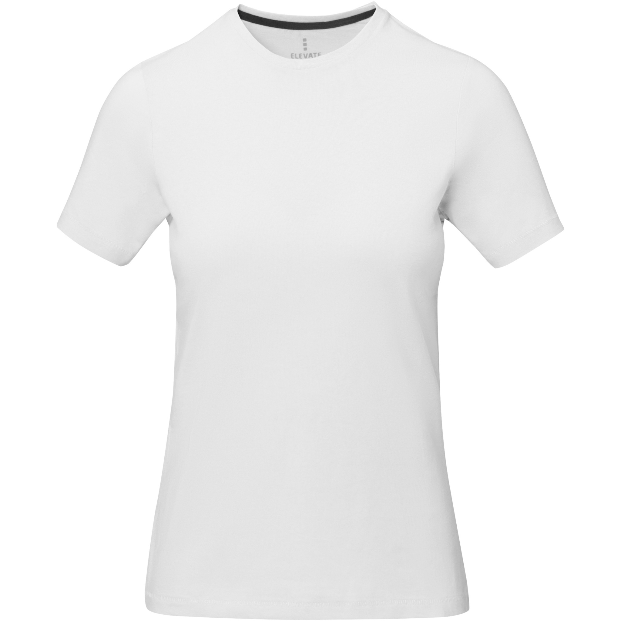 The Nanaimo short sleeve women's t-shirt made of 160 g/m² cotton is perfect for any occasion and a comfortable addition to any wardrobe. The ringspun cotton provides a stronger and smoother yarn, resulting in a more durable fabric that guarantees high quality branding. It is shaped for a feminine look and has side seams to ensure a great fit, while the printed in-neck Elevate branding adds to its overall comfort. The re-enforced shoulders also ensure a continuous fit even after long-term use.