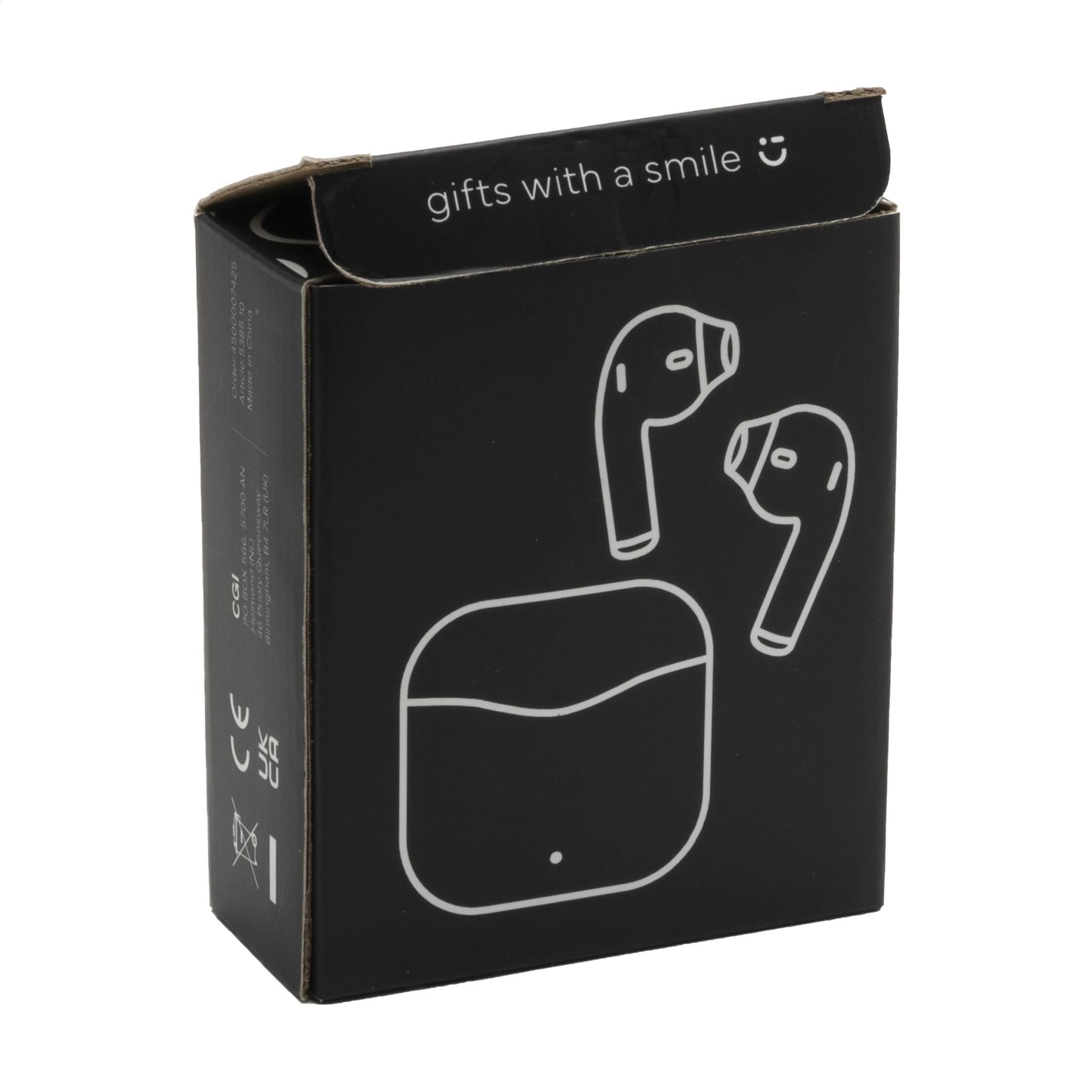 Next generation true wireless earphones in charging case made from recyced ABS. These earphones use BT 5.1 for a smooth connection. The earphones have a 30mAh battery and take only one hour to charge with the 200mAh charging case. Excellent sound reproduction and adjustable volume is coupled with autopairing technology providing automatic pairing and touch control. Easily make hands-free phone calls and enjoy music without restrictive cables. Connection has a 10-meter range. Includes a PVC-free charging cable type-C and user manual. RCS-certified. Total recycled material: 62.5%. Each item is individually boxed.