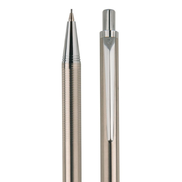 Luxury ballpoint pen and micro pencil Pierre Cardin in silver, aluminium body with a simple clip, fine engraving on the surface. Ballpoint pen contains a quality blue refill with the tip 1 mm, micro pencil a graphite 0.5 mm. Packed in Pierre Cardin‘s luxurious pocket, comes with a certificate of authenticity.