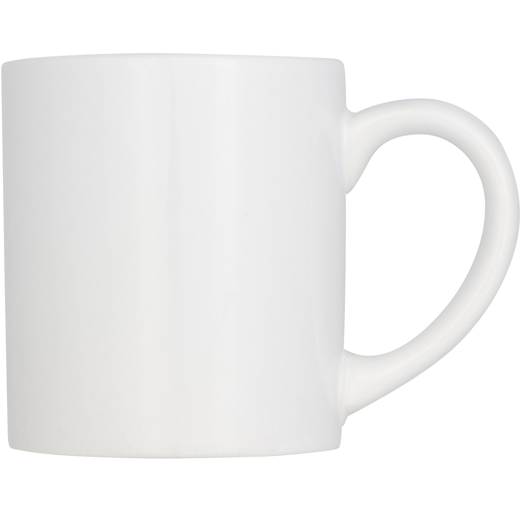 This ceramic mug has a special coating for sublimation. Volume capacity is 210ml. Presented in a white carton box.