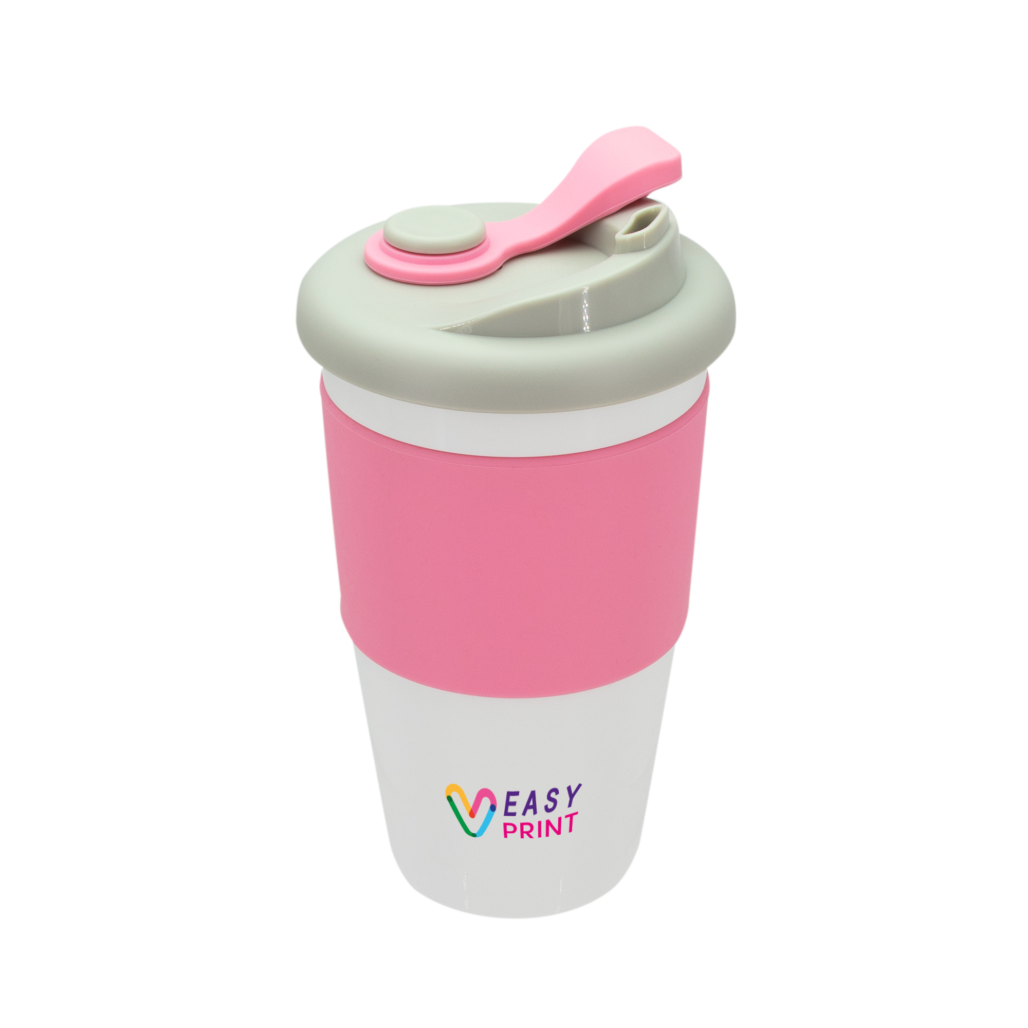 This 454 ml mug is the perfect companion for any traveler. It features a silicone lid with a functional, tightly sealing spout. Its colorful silicone elements add style, making it not just practical but also a fashionable accessory. Made from PLA derived from recycled materials, it is environmentally friendly. Its compact size allows for easy fitting in most car holders, making it an ideal choice for frequent travelers.