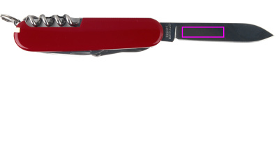 Features: 1.Large blade 2.Small blade 3.Corkscrew 4.Can Opener With: 5.-Small Screwdriver 6.Bottle Opener With: 7.-Large Screwdriver 8.-Wire Stripper 9.Reamer/Punch 10.Sewing Eye 11.Key Ring 12.Tweezers 13.Toothpick 14.Scissors 15.Multipurpose Hook