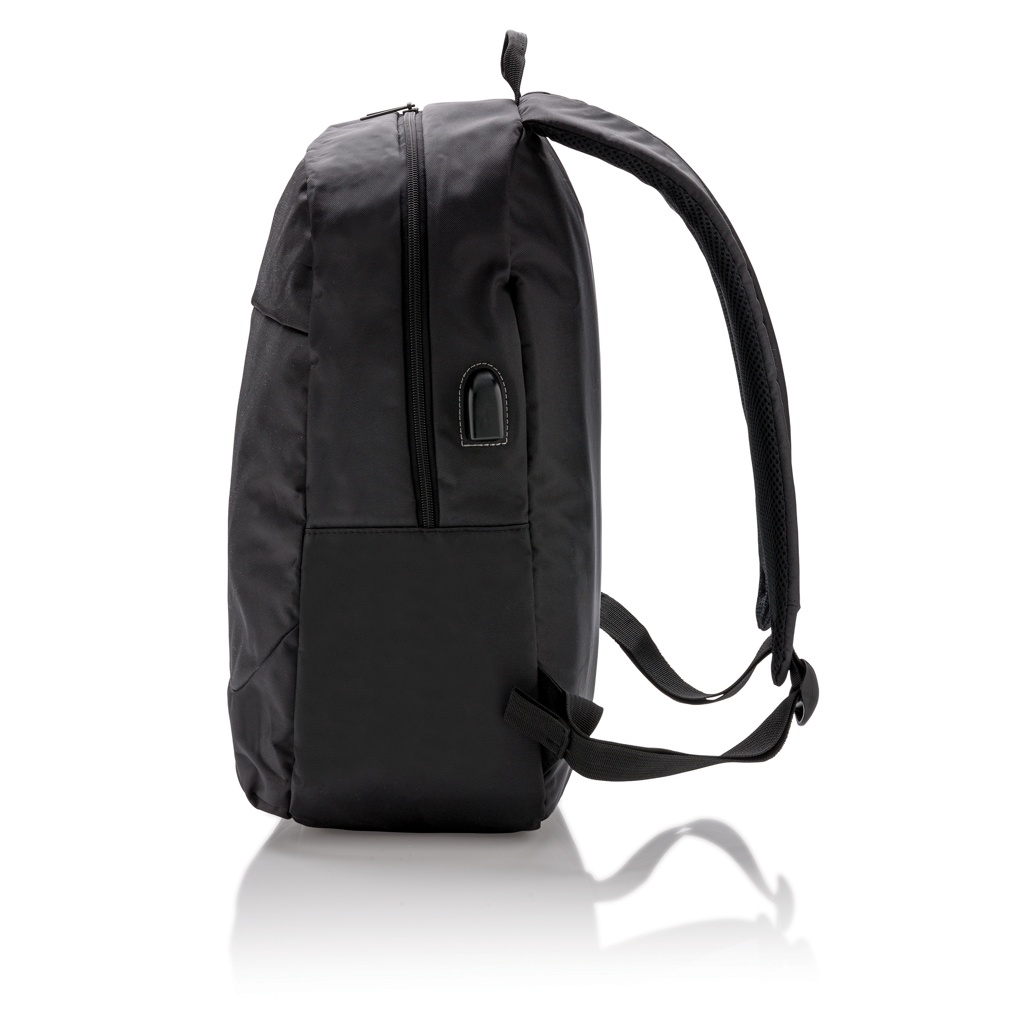 Stay connected while you’re on the go with this functional 600D polyester 15” laptop backpack with USB output. Just connect any powerbank into the usb input and charge your gear on the side USB output!