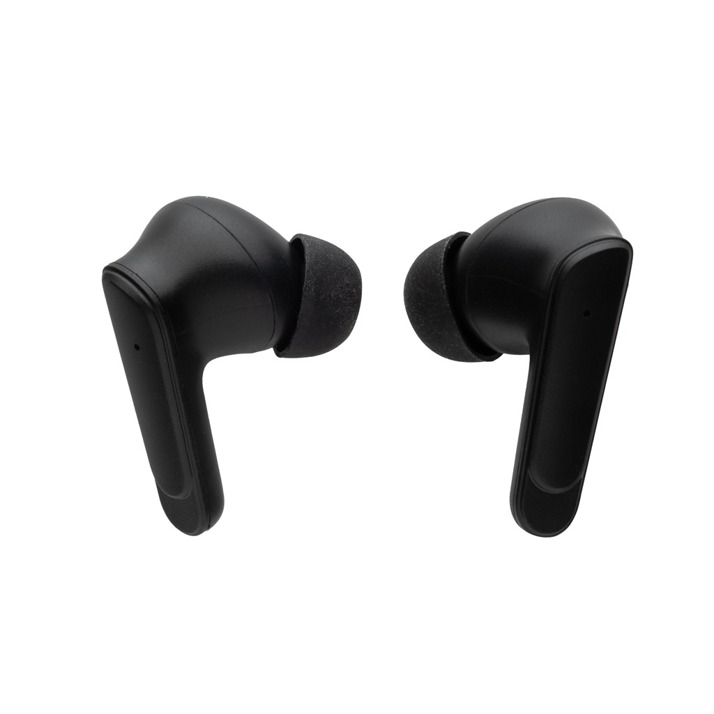 Commute, work or travel in silence with these hybrid ANC and ENC earbuds. The ANC function makes sure outside noise is reduced for optimal concentration. The ENC functions filters away external sounds when making a phone call to have a more clear calling experience. The earbuds and charging case are made with RCS (Recycled Claim Standard) certified recycled ABS. Total recycled content: 66% based on total item weight. RCS certification ensures a completely certified supply chain of the recycled materials. The earbuds come in a compact 200 mAh charging case that allows you to charge and take your earbuds wherever you go. The earbuds use BT 5.3 for automatic pairing without any hassle and a stable connection. The earbuds have a 30 mAh battery that allows a play time of up to 5 hours (with ANC) and 7 hours (without ANC) and can be re-charged in 1.5 hours in the charging case. The wireless distance range is up to 10 meters. ANC degree: 23 DB. Including 3 size eartips.