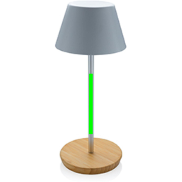 Luxury table lamp made with RCS certified recycled ABS plastic, recycled aluminum and FSC certified 100% bamboo . Total recycled content: 40% based on total item weight. RCS certification ensures a completely certified supply chain of the recycled materials. The table lamp will operate up 18 hours on one single charge and can be re-charged in 2 hours. With a-grade 1800 mAh battery and type C input ( 5V/1A) With two modes (warm light and white light) that can be adjusted by touch sensor in the base. Rechargeable via USB-C. Packed in FSC® mix packaging. IPX 4 waterproof.