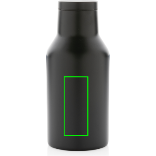 This RCS Recycled stainless steel compact bottle comes with a secure, screw-on lid that features a wide opening for easy cleaning and filling. This compact bottle is made from recycled stainless steel and features double-wall construction to keep your favourite beverages warm for up to 3 hours or cold for up to 6 hours. Made with RCS (Recycled Claim Standard) certified recycled materials. RCS certification ensures a completely certified supply chain of the recycled materials. Total recycled content: 89% based on total item weight. BPA free. Capacity 300ml. Including FSC®-certified kraft packaging.
