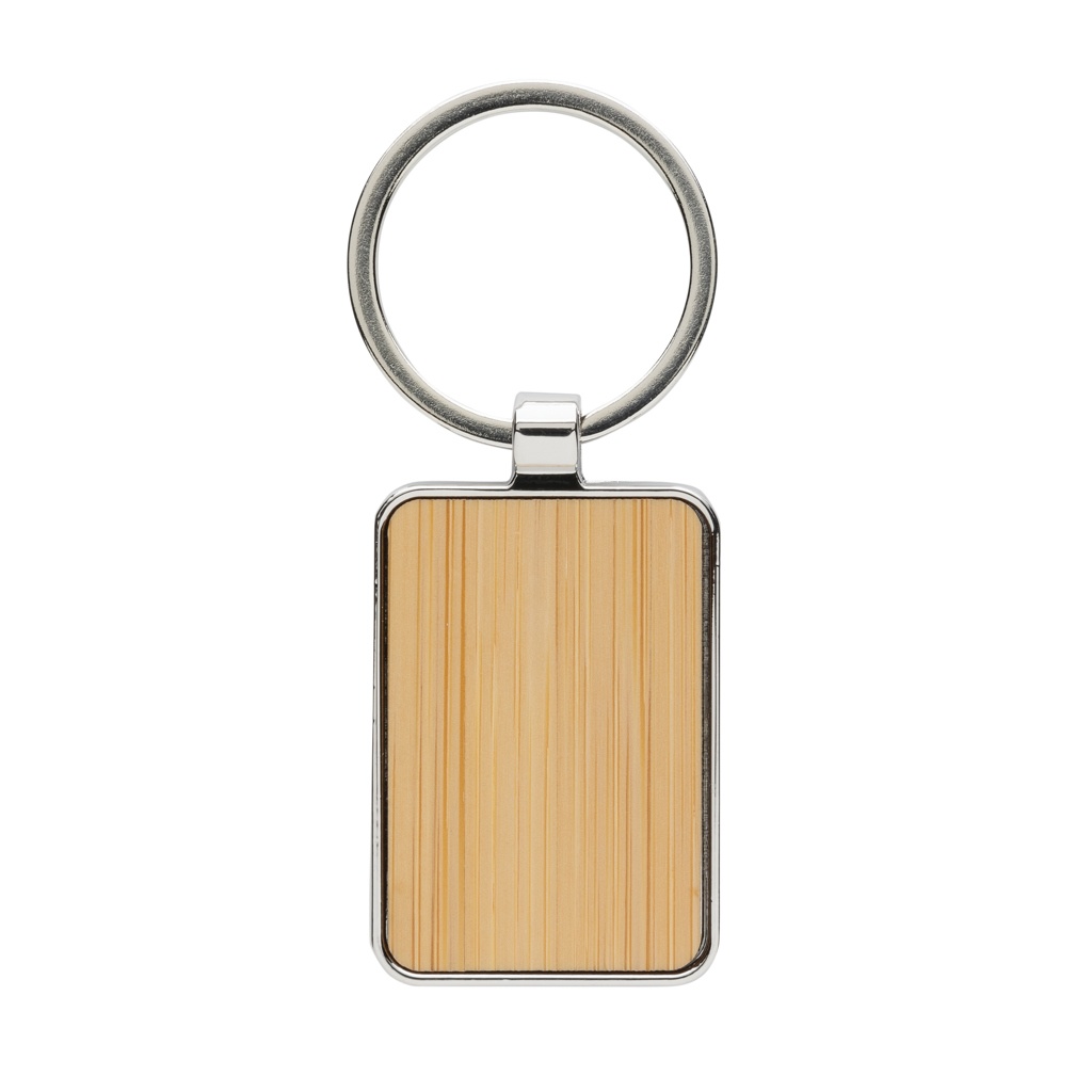 Logotrade promotional product image of: RCS recycled zinc alloy rectangle keychain with bamboo