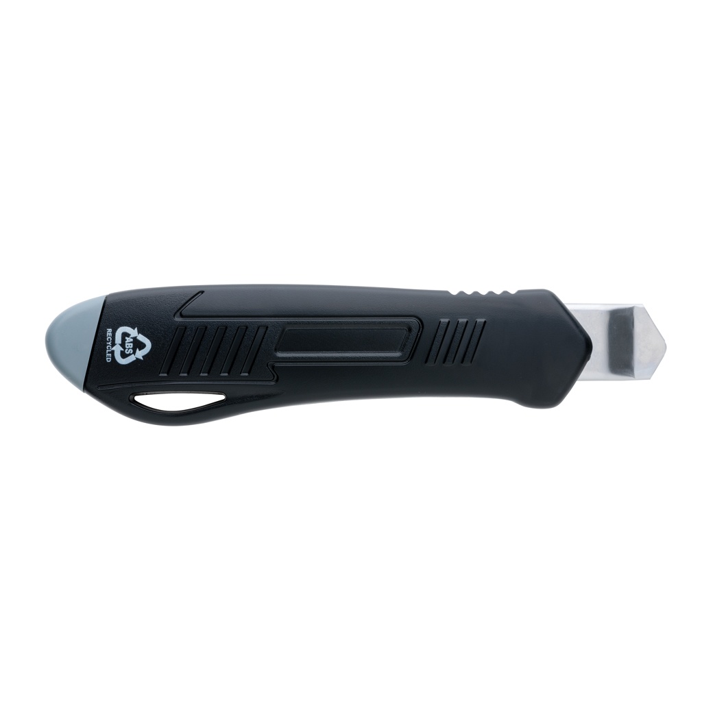 Refillable RCS certified recycled plastic snap-off knife made with RCS (Recycled Claim Standard) certified recycled ABS and stainless steel blade. Total recycled content: 36% based on total item weight. RCS certification ensures a completely certified supply chain of the recycled materials. This versatile knife features a snap-off blade design, allowing you to easily replace the SK4 blade when it becomes dull. Whether you need to cut through cardboard, plastic, or even thin sheets of metal, the snap-off knife is up to the task. The sharp, durable blade ensures that you'll get clean, precise cuts every time. The knife is also incredibly easy to use. The comfortable handle provides a secure grip, allowing you to maintain complete control as you cut. Plus, the lightweight design makes it easy to carry with you wherever you go. Packed in FSC® mix kraft package. The item comes with 1 blade inside the item and two extra blades.