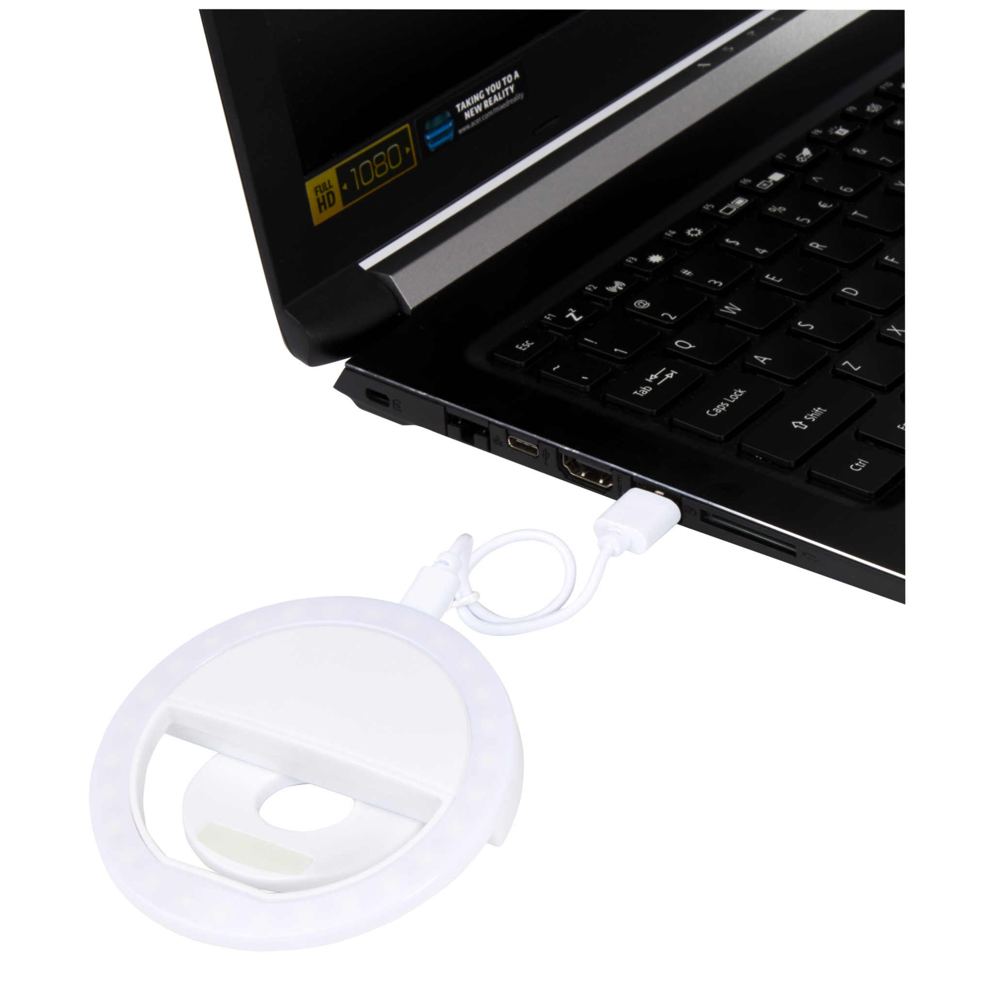 Portable selfie light 28 LEDs that can easily be installed on a phone or laptop screen with an clip function. A must-have gadget for any video/vlog maker or anyone that enjoys taking pictures. The white light is adjustable in 3 different brightness levels for the perfect light exposure. The 28 LEDs are positioned in a circle, providing light evenly across the face. The selfie-light has a capacity of at least 30 minutes at max brightness.
