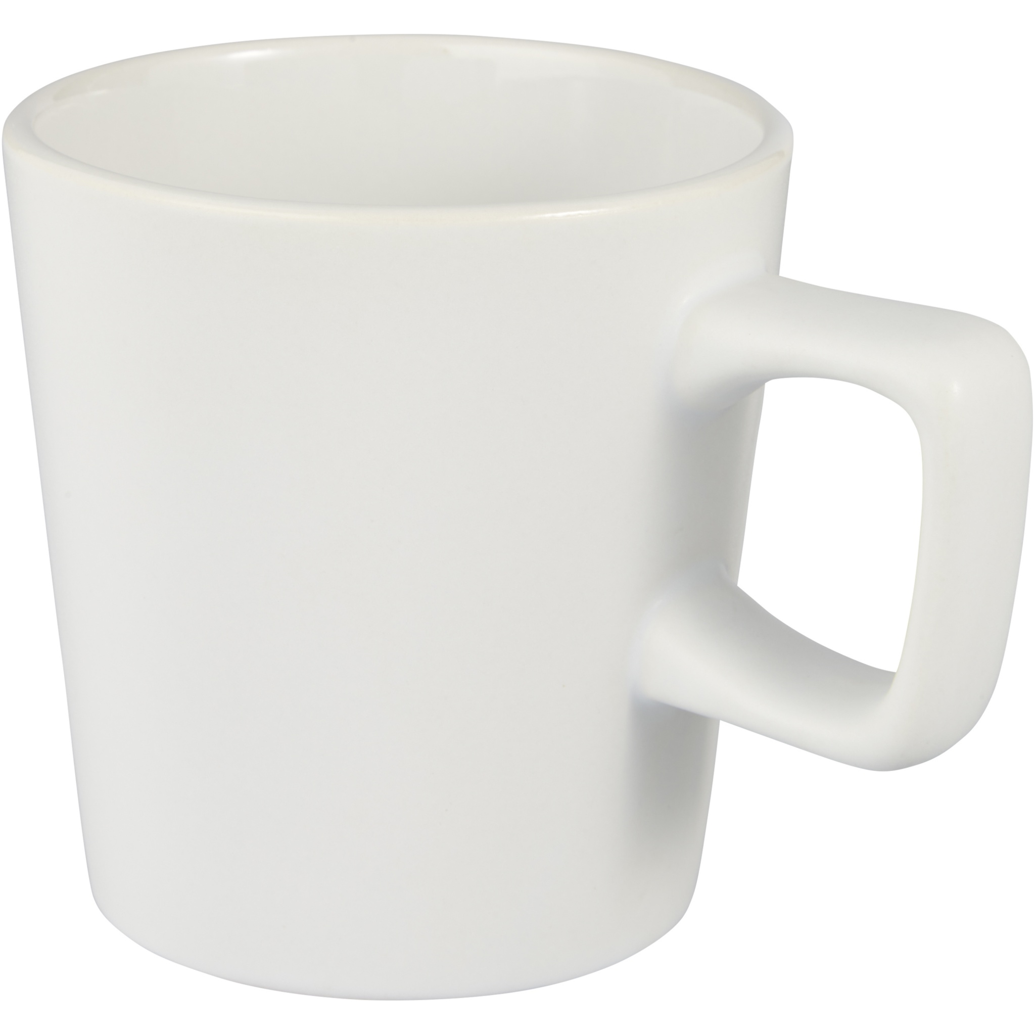 Modern design ceramic mug with matt finish. Volume capacity is 280 ml. Dishwasher safe for all decoration methods. Presented in a recycled cardboard gift box.