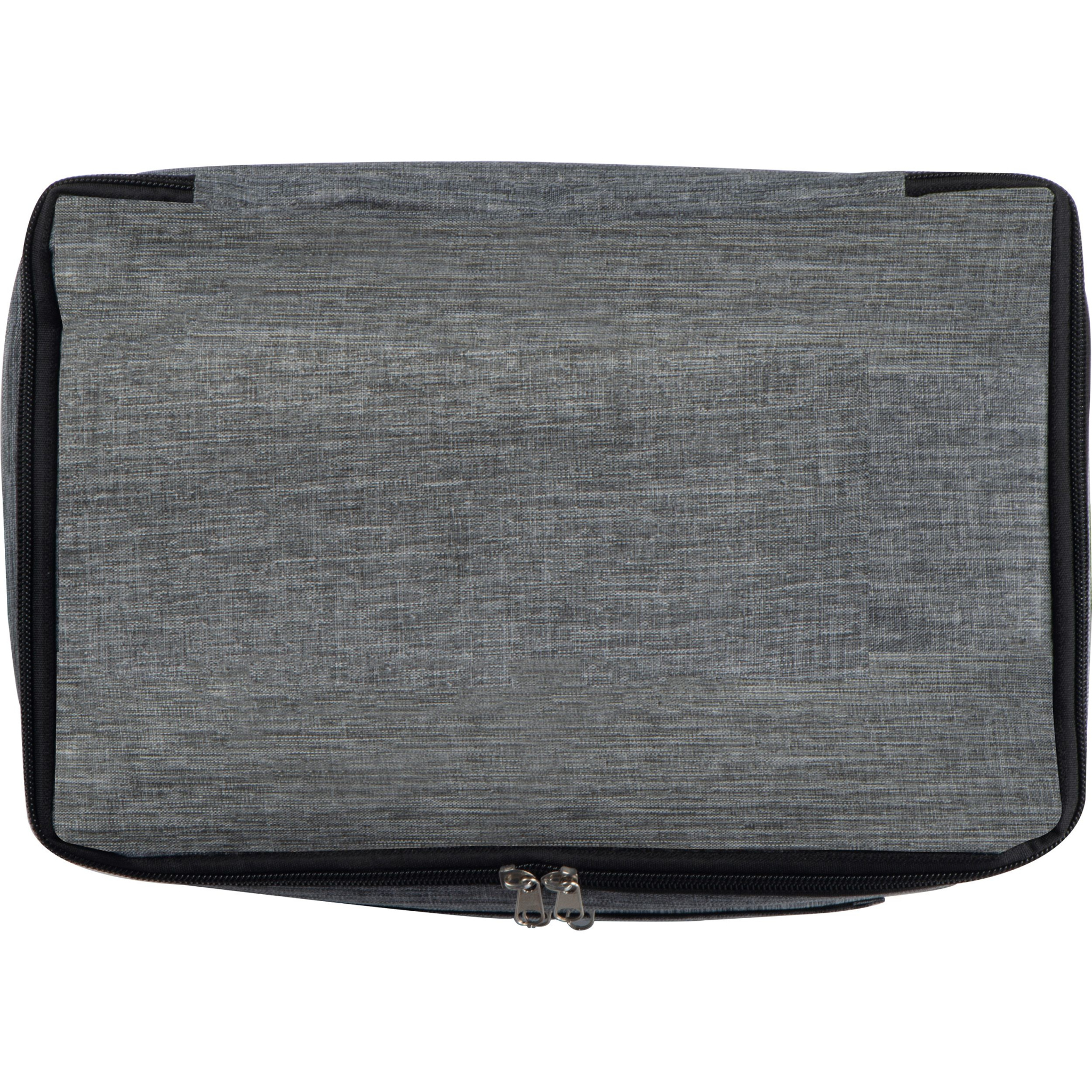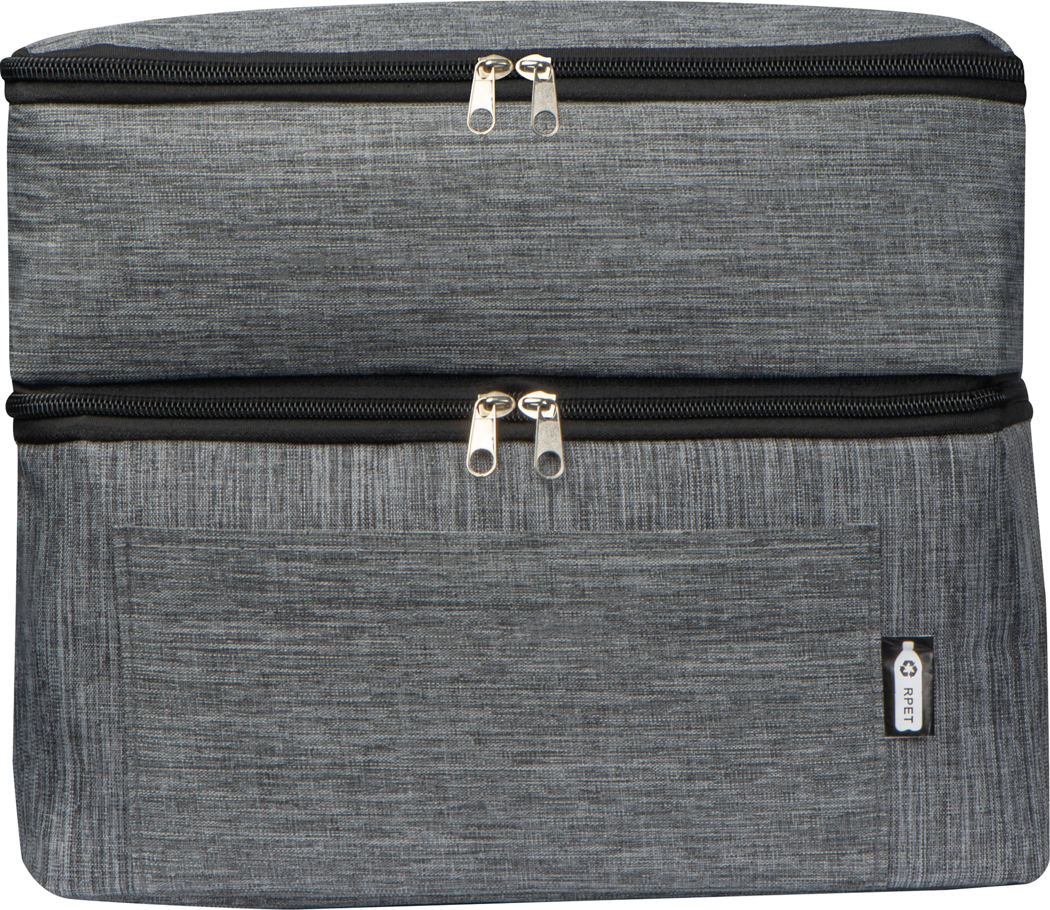 RPET cooler bag with 2 separate PEVA cooler compartments and a front pocket. Thanks to the shoulder strap, the cooler bag is perfect for all situations, whether shopping, a day at the beach or on vacation. We will print your logo on the bag.