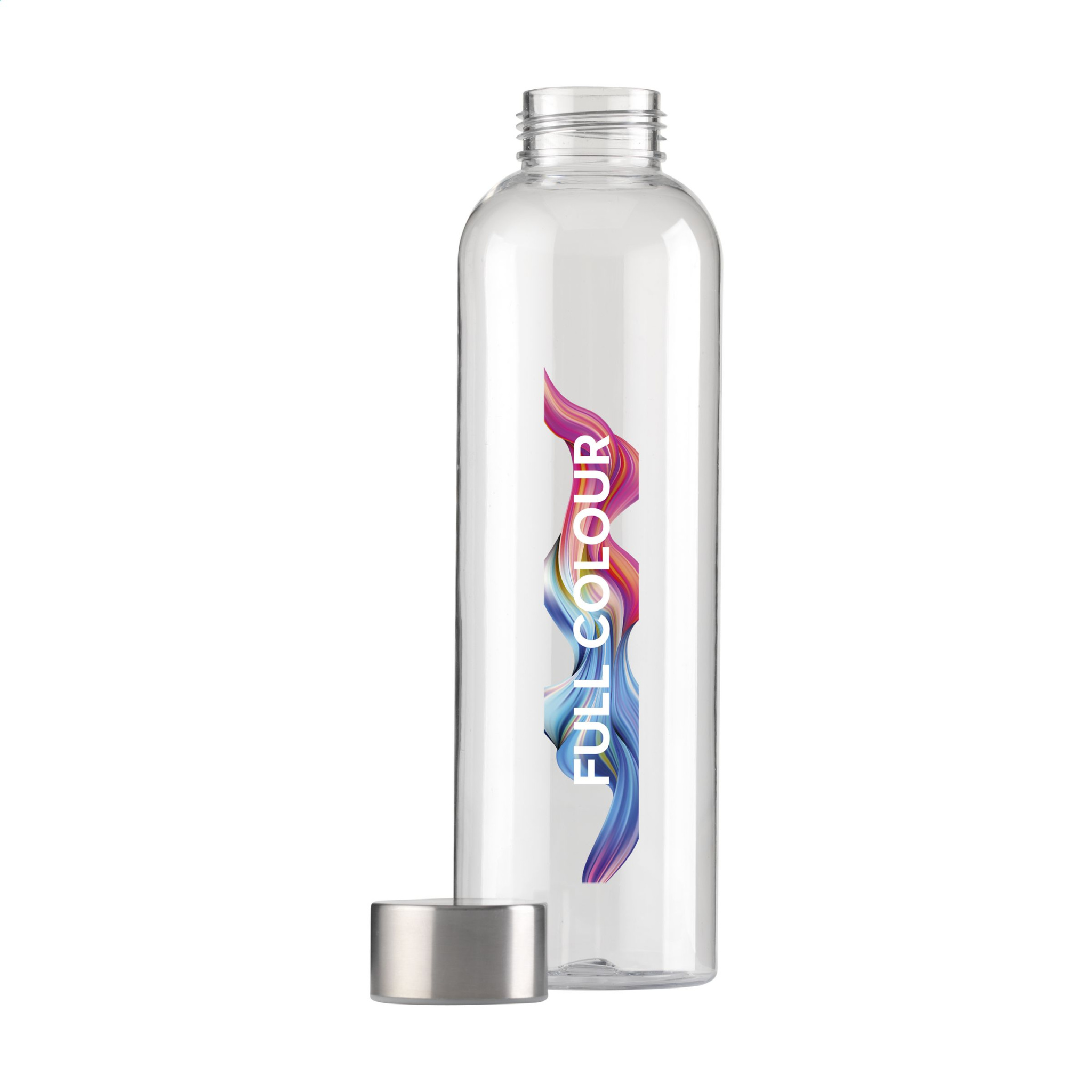 Transparent, BPA-free water bottle made from PCTG SK plastic. With stainless steel screw top. The sleek design catches the eye immediately and is extremely comfortable. Leakproof. Capacity 650 ml.